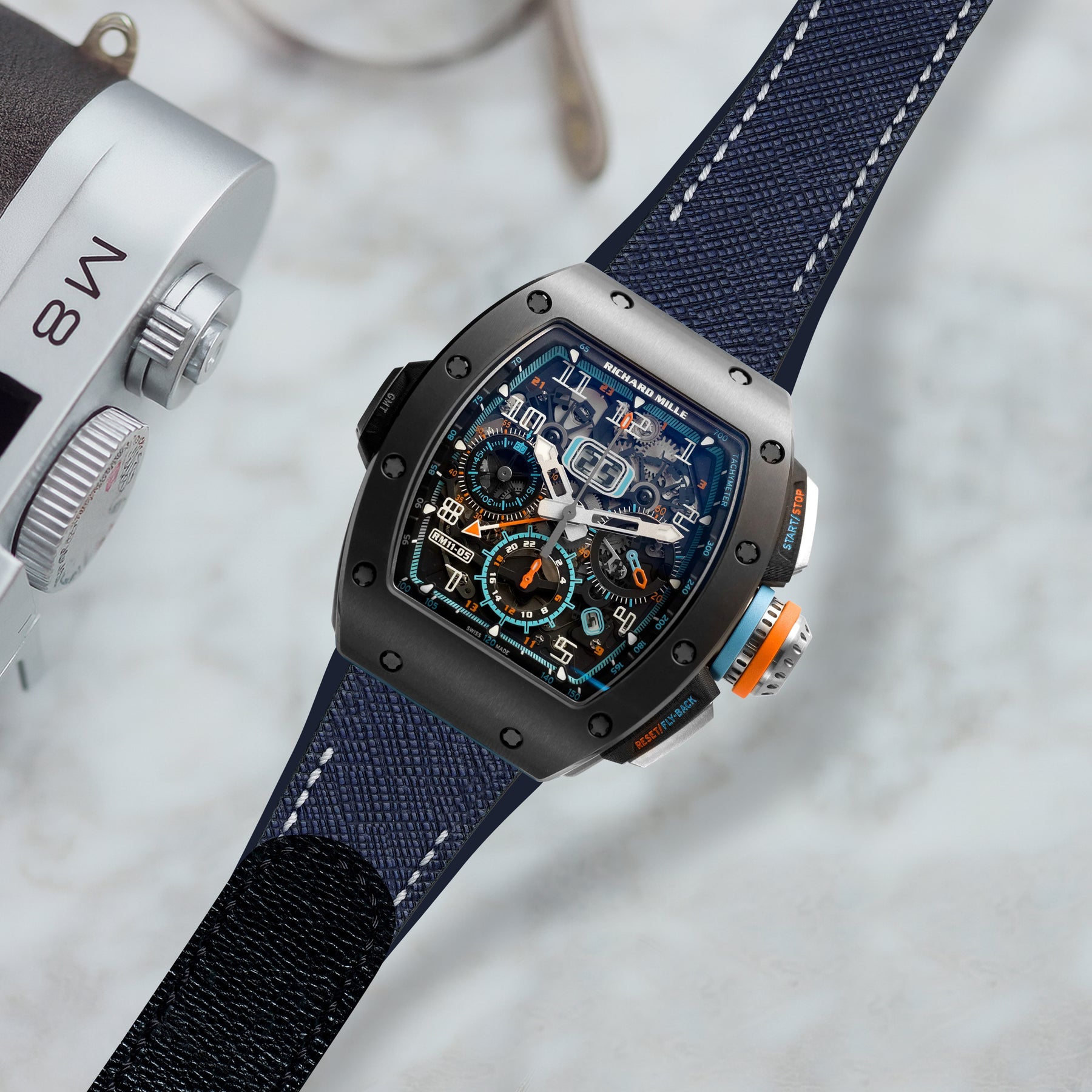 Richard Mille Straps - Velcro Saffiano Navy Blue