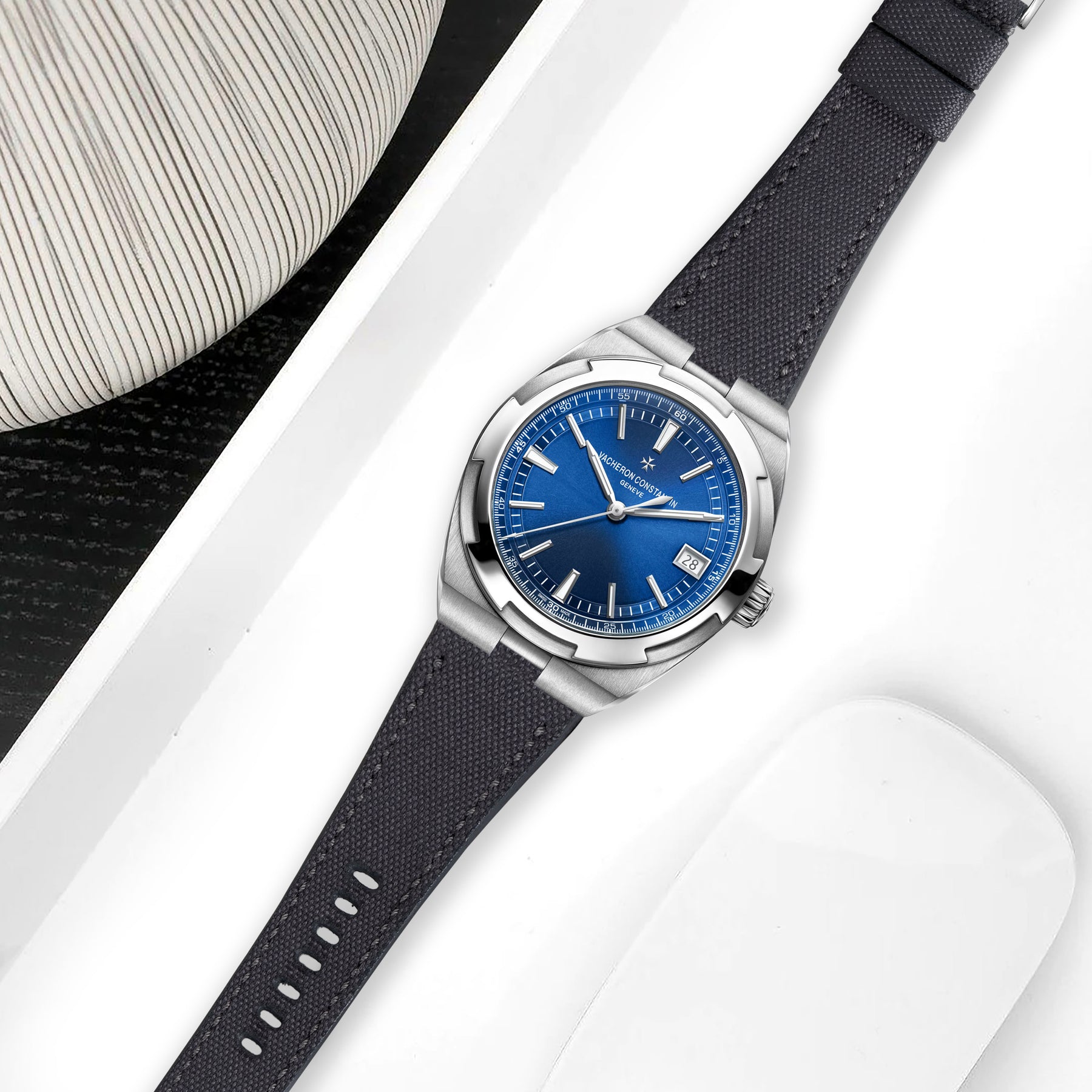 Our Canvas straps are for the explorer inside you. The new canvas watch straps are crafted from highly durable canvas material which is very resistant to water, stain and easy to clean. Perfect for year-round-wear, no matter your location ensuring that you'll experience extreme comfort from the moment you mount it on your wrist. Coming in a wide range of canvas colours material for Vacheron Constantin Overseas, you can choose the one that best suits your watch and outfit.