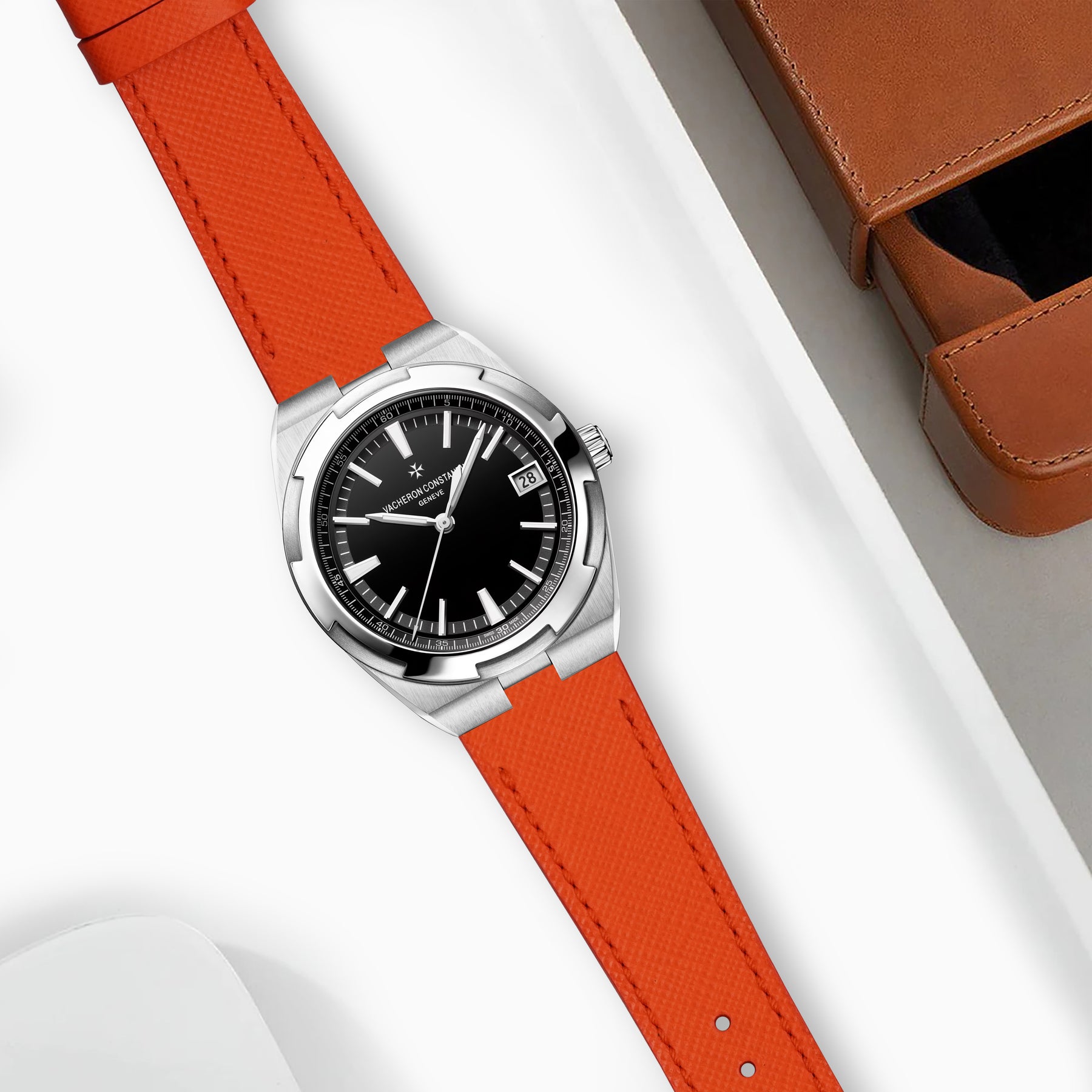 Our Orange Saffiano is the one strap for all your needs. The watch strap deals well with water, scratches and is also easy to care for and can be cleaned with a simple wipe using a damp cloth. It looks fantastic on Vacheron Constantin Overseas and is so easy to pair with your daily outfits.