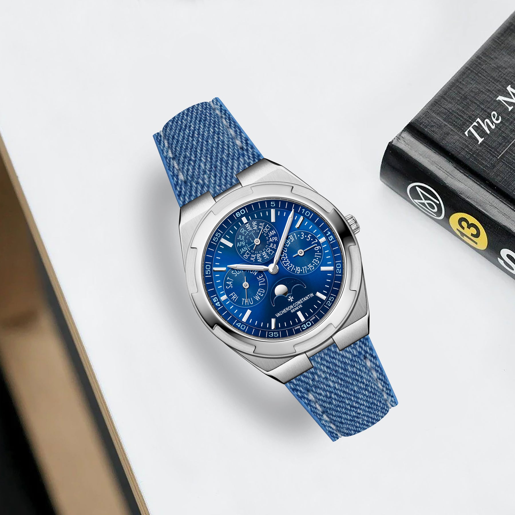 Our straps are specifically made to fit the Vacheron Constantin Overseas VCO 4500V (Self-Winding), VCO 7900V (Dual Time), VCO 4300V (Perpetual Calendar Ultra-Thin), VCO 5500V (Chronograph), VCO 6000V (Tourbillon), VCO 7700V (World-Time) with the special metal insert for the interchangeable strap system, you can easily switch in seconds without tools. While the OEM bracelet and rubber strap that comes with the watch are good, there are times when you just prefer to have a Blue Jean strap on for a different look.