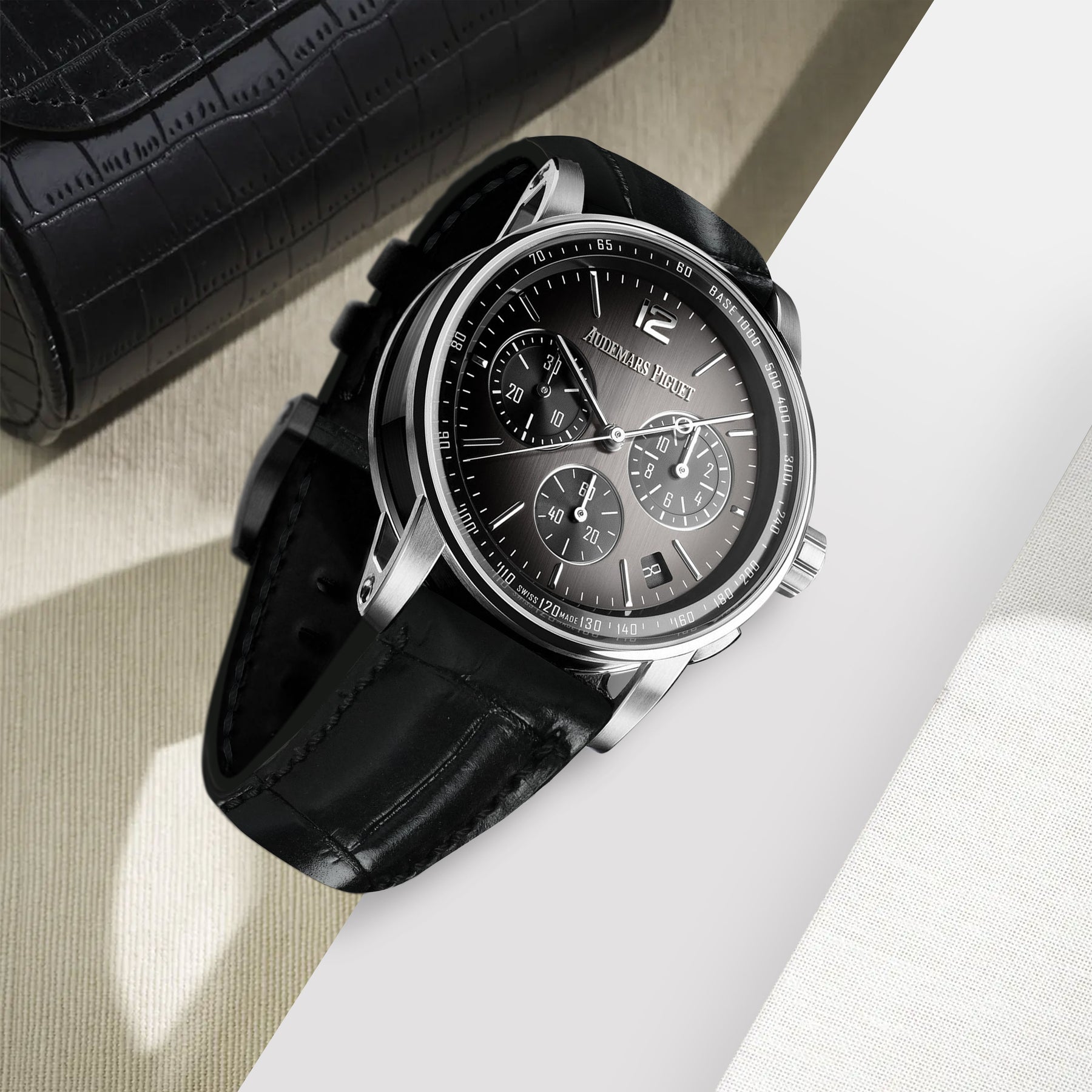 This Croco strap is designed to elevate the Code 11.59 with a more formal, high-impact finish—perfect for occasions where you want the watch to feel instantly more luxurious. Our Croco straps are made from the center section of the belly, known for its beautifully uniform, square scales—structured, refined, and instantly recognizable.
