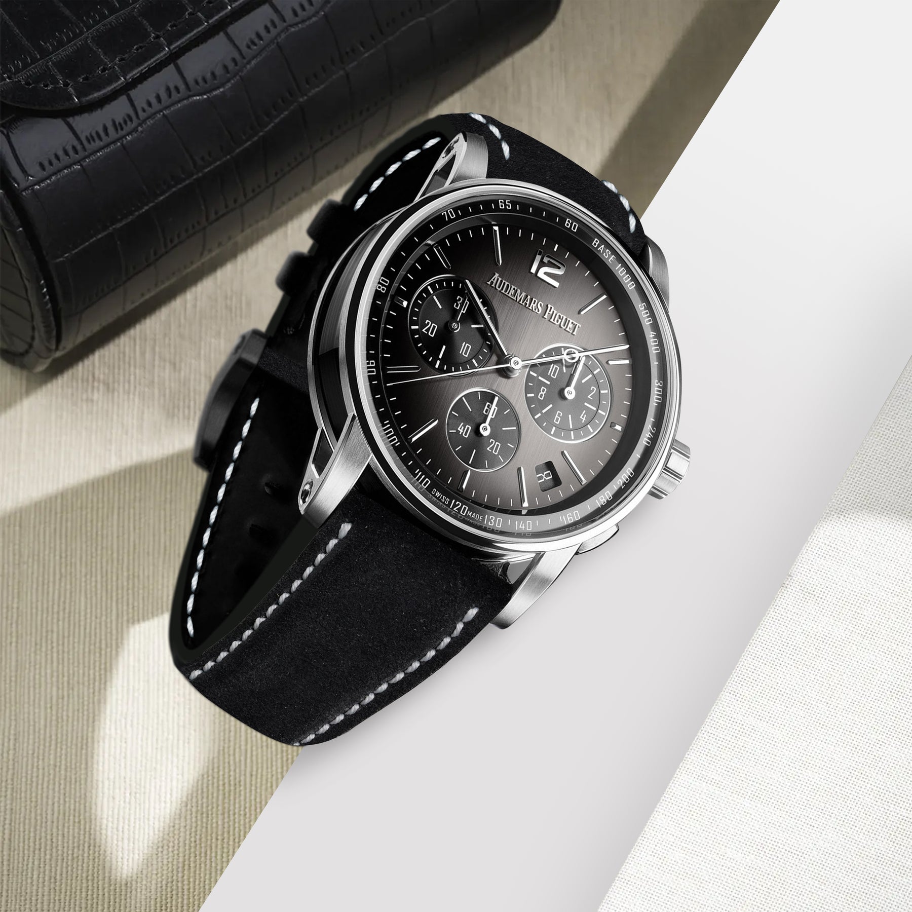 Description : The Audemars Piguet Code 11.59 is known for its modern and elegant design. Our Suede are made to match this watch perfectly, giving you a simple way to refresh the look while keeping it true to its original style. Crafted to our exact specifications, each strap offers a precise fit, a comfortable feel, and a clean finish on the wrist.