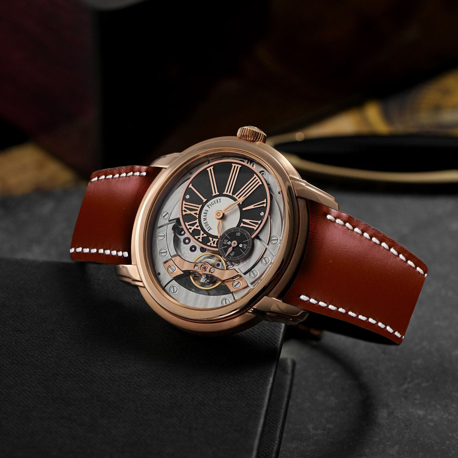 Description : The Audemars Piguet Millenary is defined by its sculptural oval case and refined elegance, making it one of the most distinctive designs in modern watchmaking. Our Buffo Reddish is crafted specifically for the Millenary’s integrated curved lug construction, rather than using a standard straight strap profile. Each strap is made to our exact specifications to follow the case geometry closely, ensuring a precise fit, improved comfort, and a clean, case-hugging finish that sits flush against the watch.
