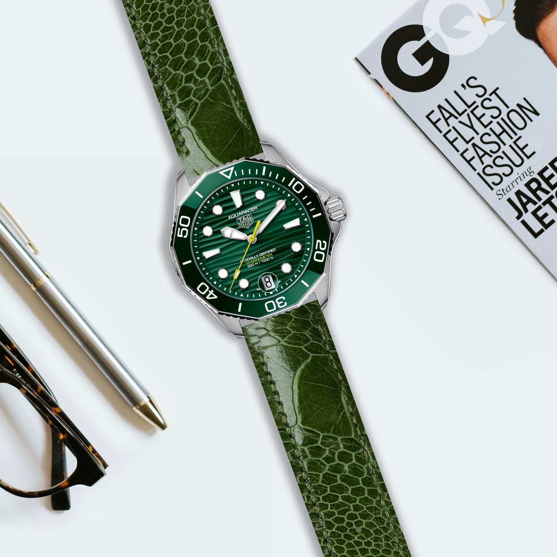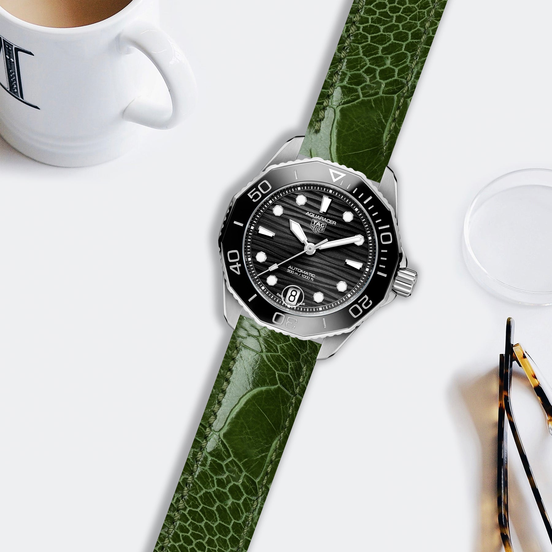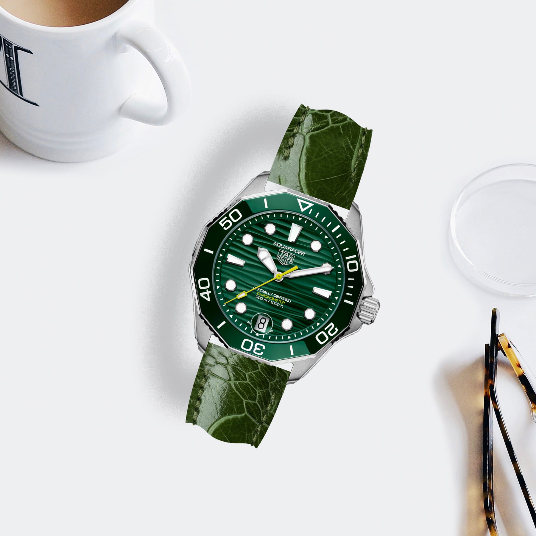 Tag Heuer Aquaracer Straps - Ostrich Leg Cactus Green