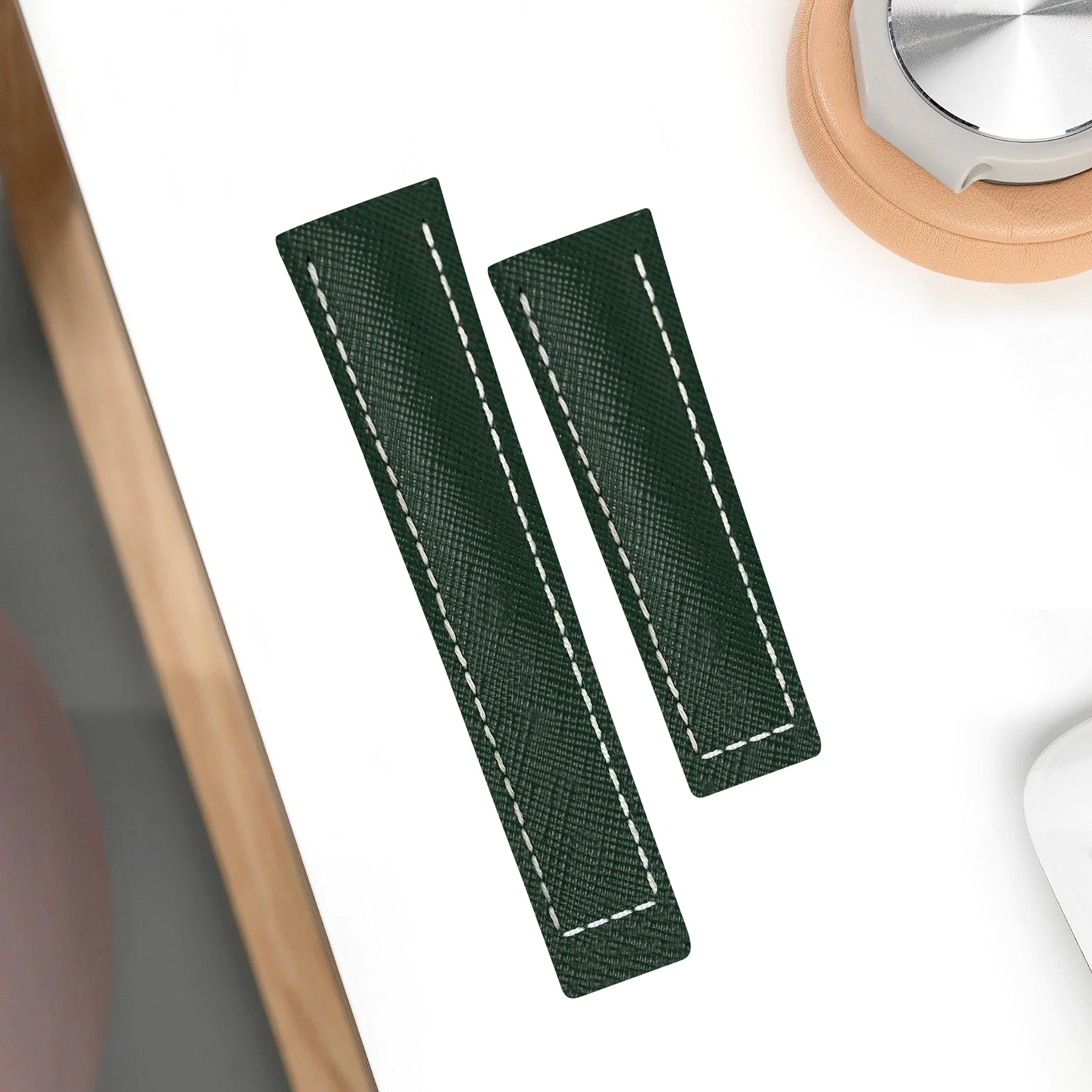 Our Dark Green Saffiano is the one strap for all your needs. The watch strap deals well with water, scratches and is also easy to care for and can be cleaned with a simple wipe using a damp cloth.