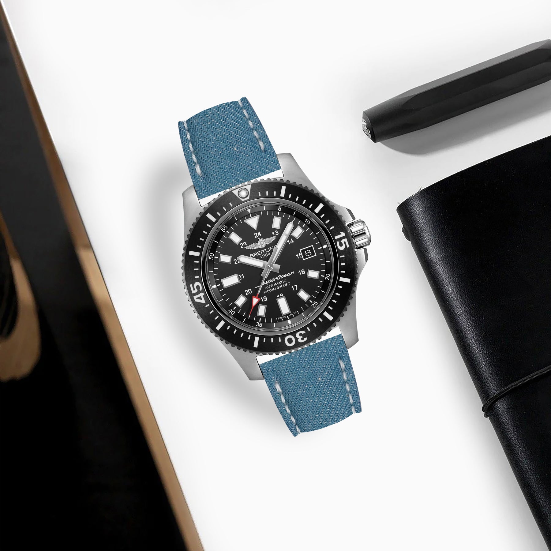 Breitling Super Ocean Straps - Denim Blue Rebel