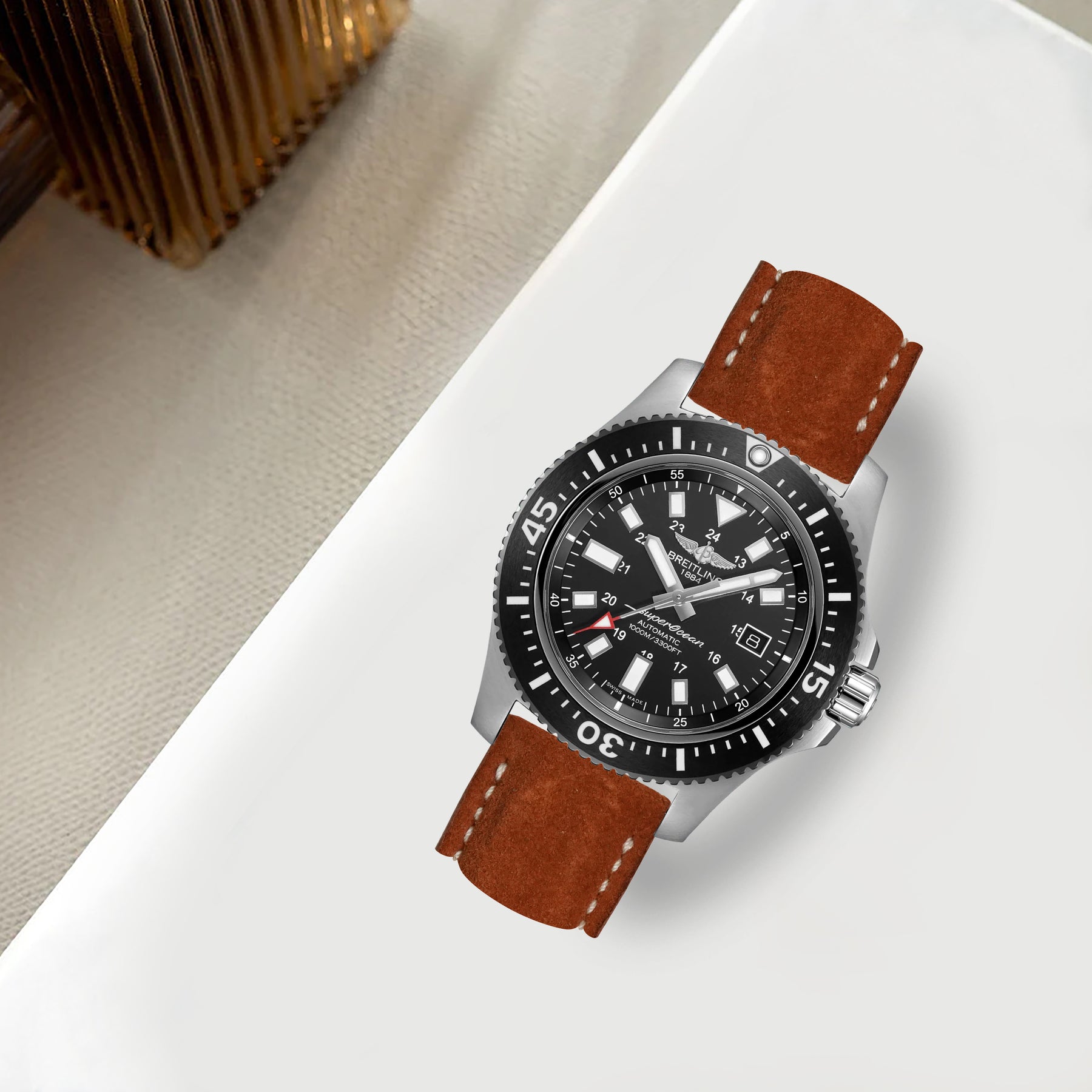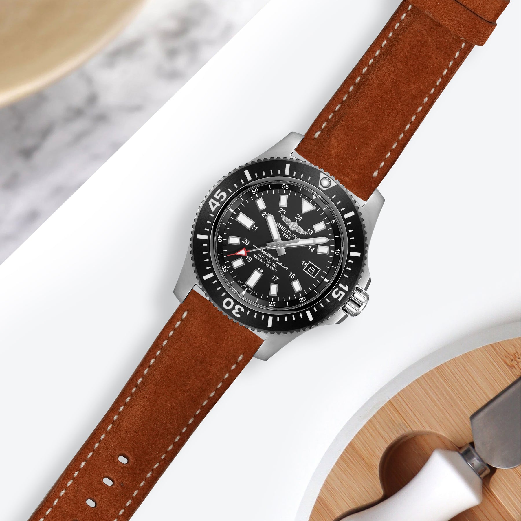 Breitling Avenger Straps - Suede Chestnut