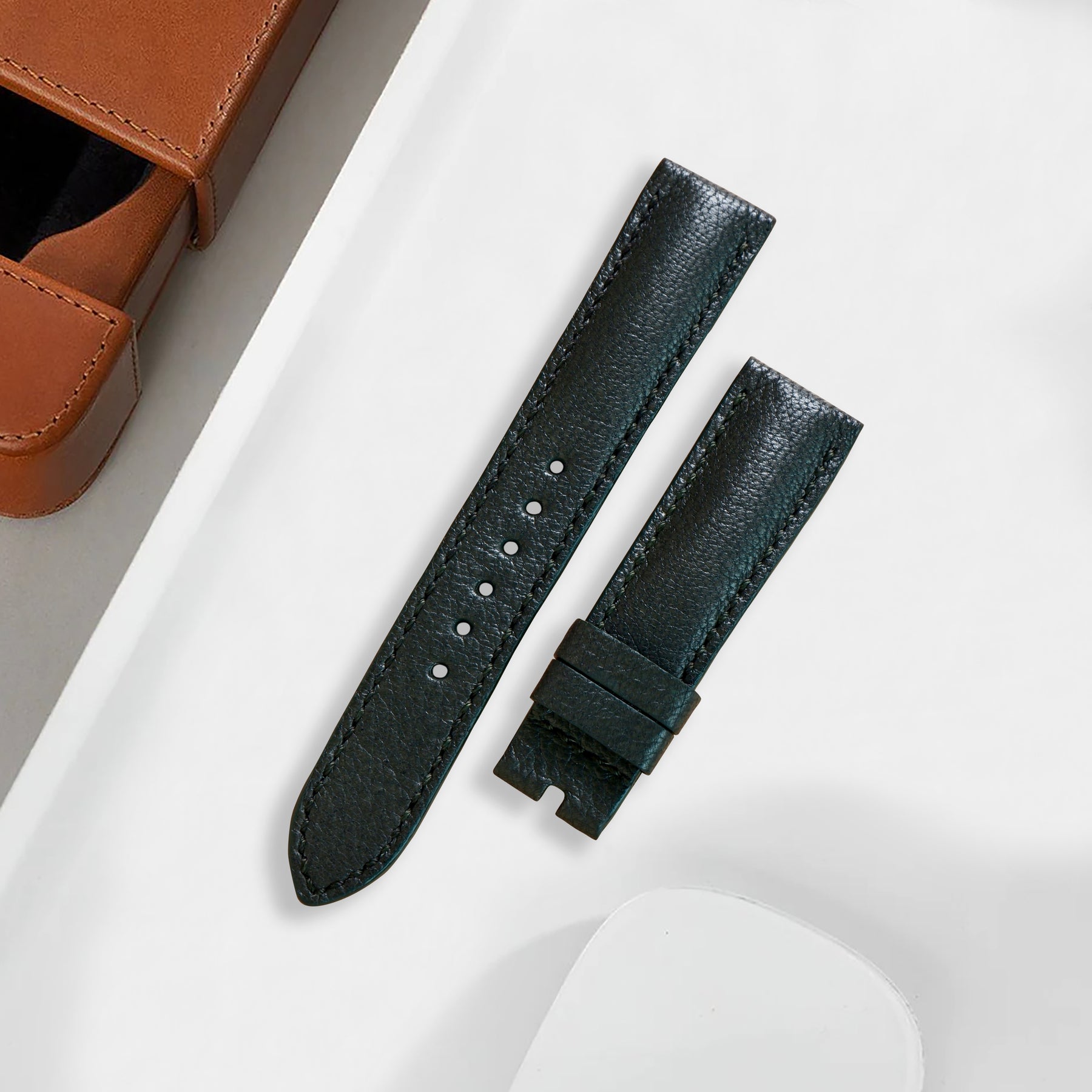 Chevre is immediately recognisable from its texture and grain. A smooth surface and a slight gloss immediately imparts luxuriousness to products made with this leather. Not only a feast for the eyes, chevre is also strongly water and scratch-resistant, and is a great option for daily wear watch straps.