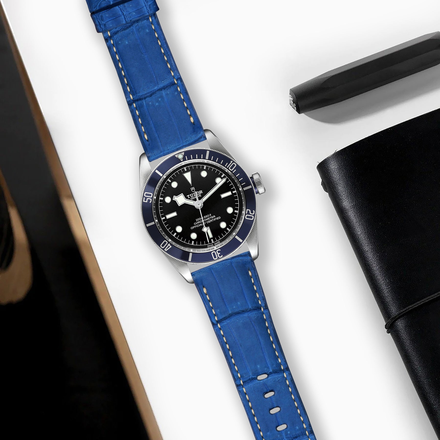 Tudor Blackbay 41mm Straps - Croco Nubuck Blue