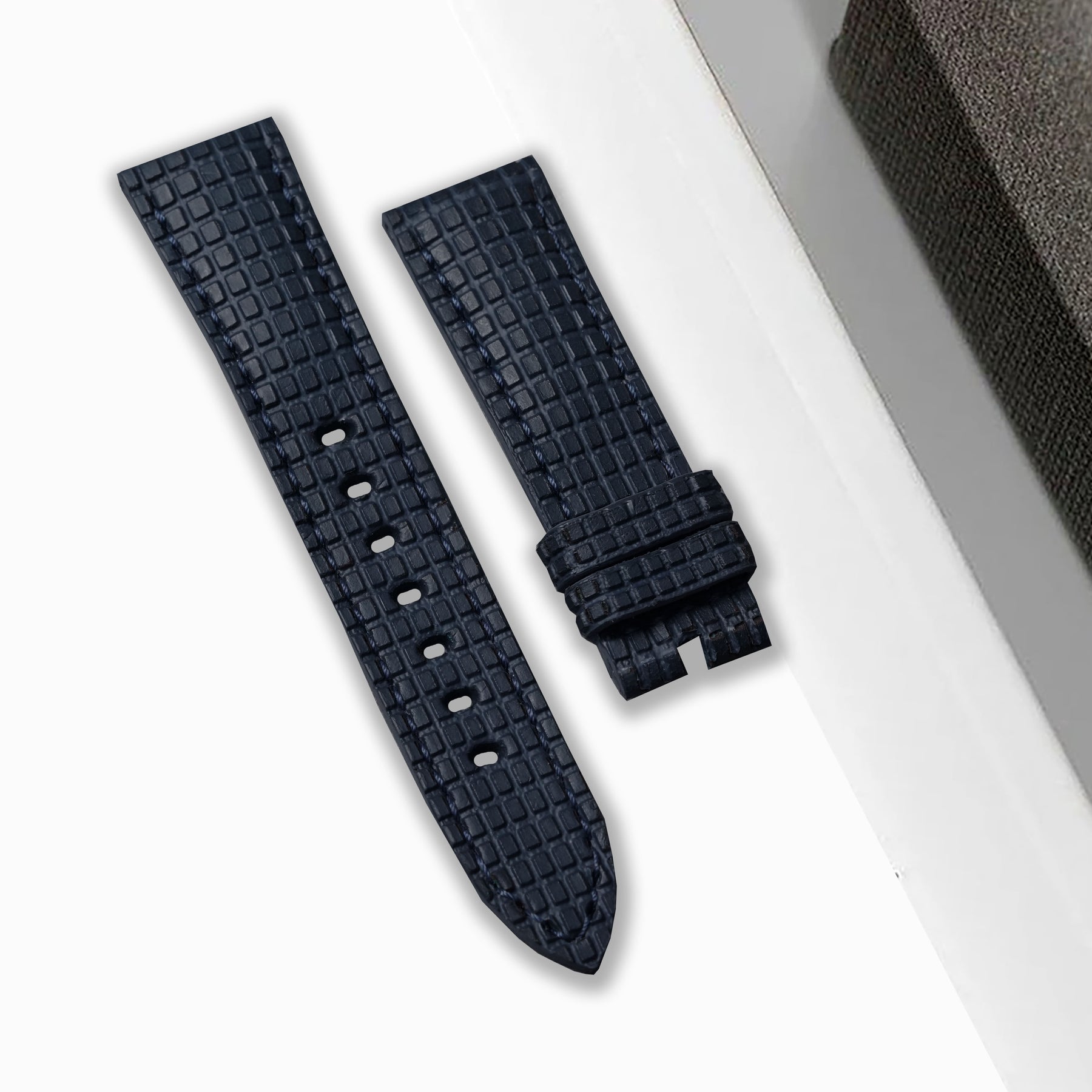 Material : Crafted from Italian pull up leather has been stamped  in chessboard pattern with hypoallergenic calf leather lining which prolongs the life of our straps by creating a barrier between the leather of the strap and your skin.
