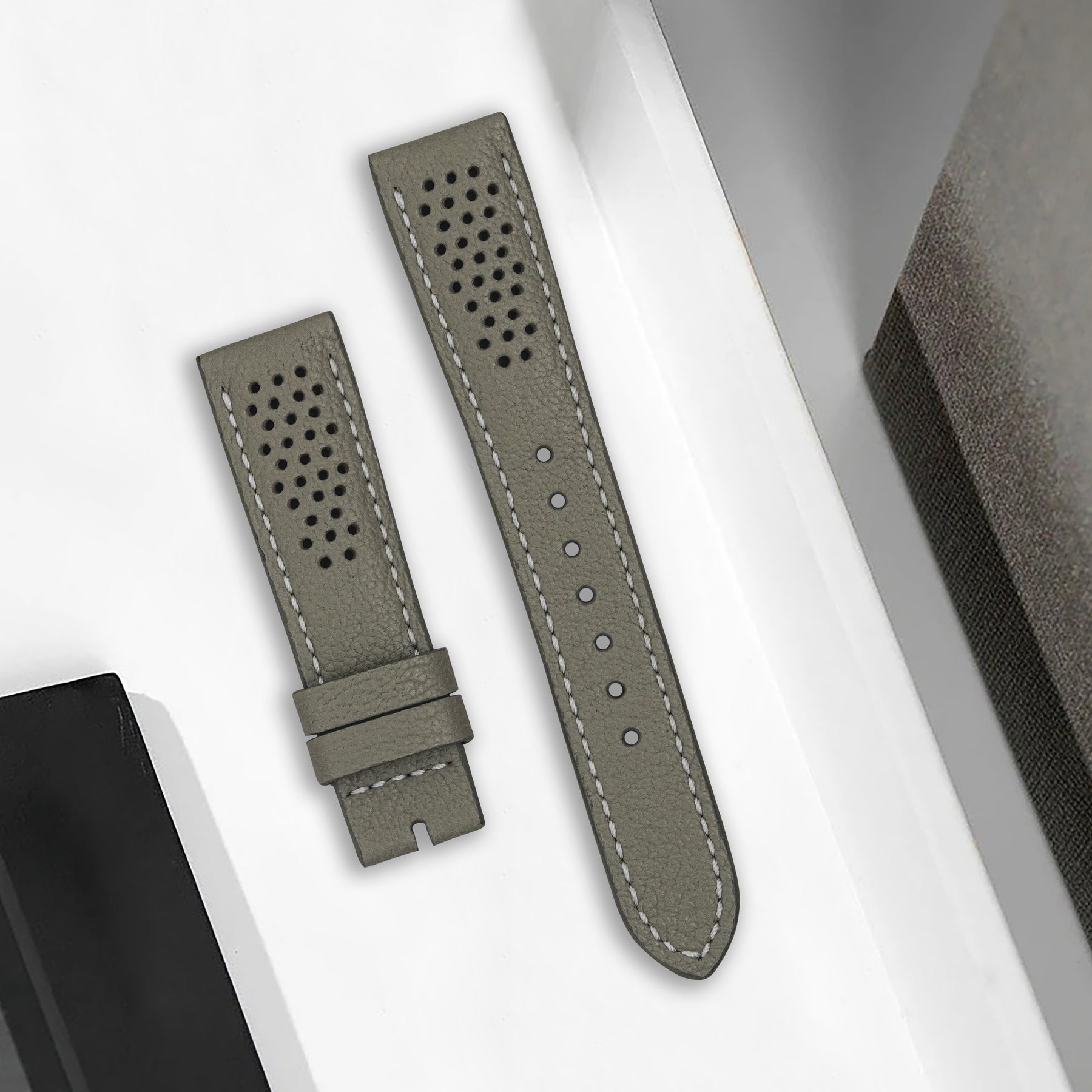 Description : Inspired by the sporty times of the 70’s, these racing straps are an essential to make any sport watch look even cooler. The holes make the strap lighter and more breathable, ideal for warm conditions where you want the comfy feel of a leather strap but don’t want the whole leather feel.