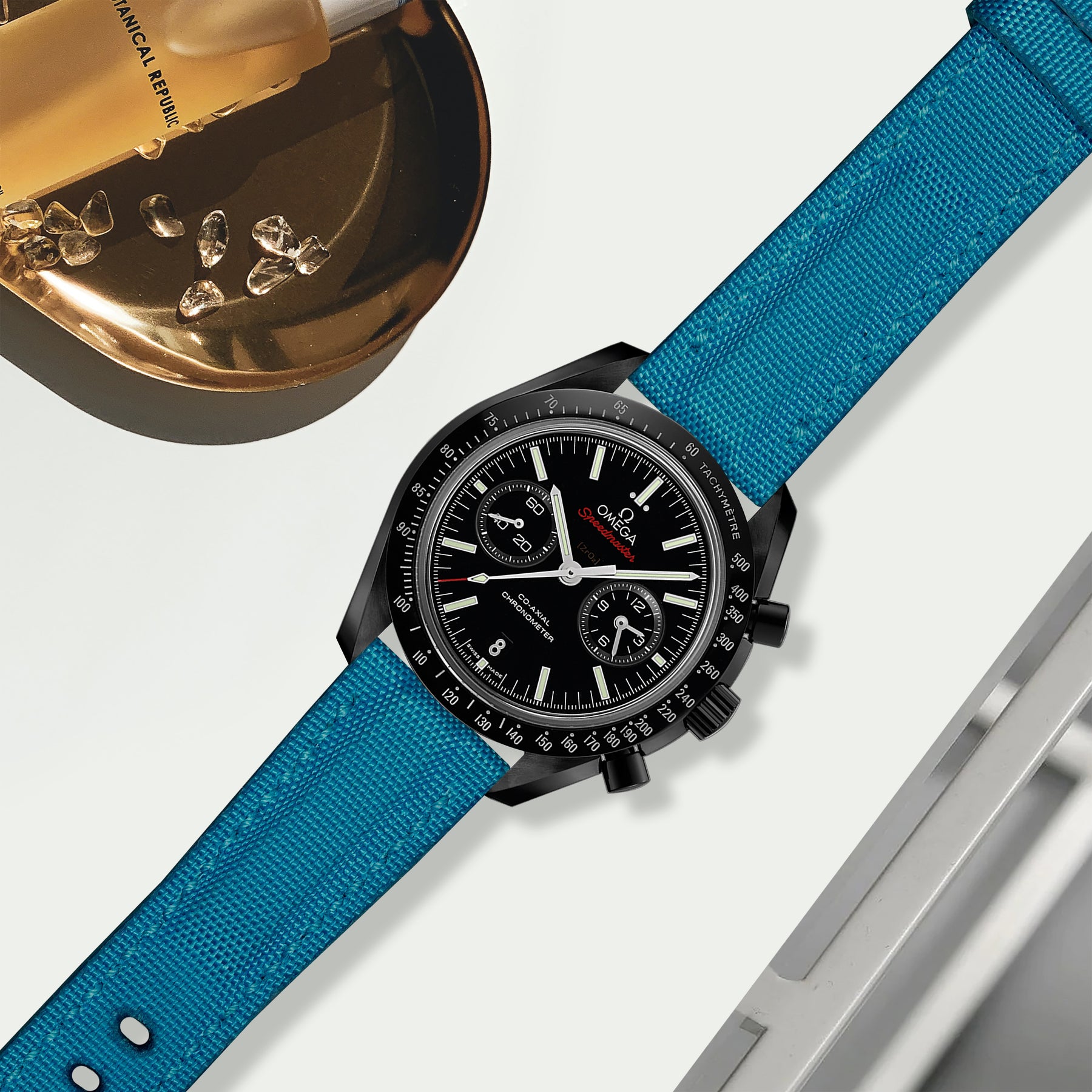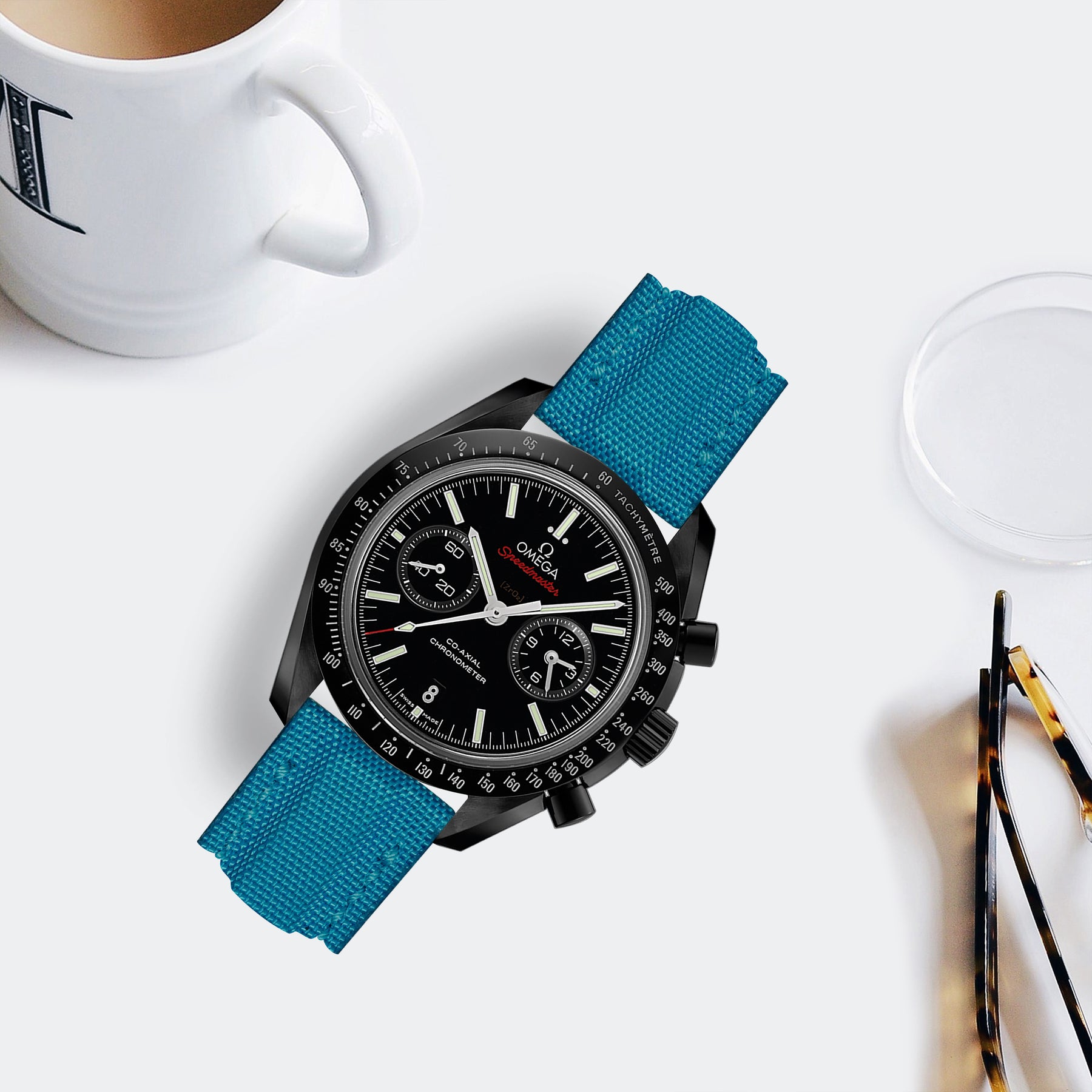 Omega Dark Side Of The Moon Straps - Canvas Extreme Padded Cyan Blue