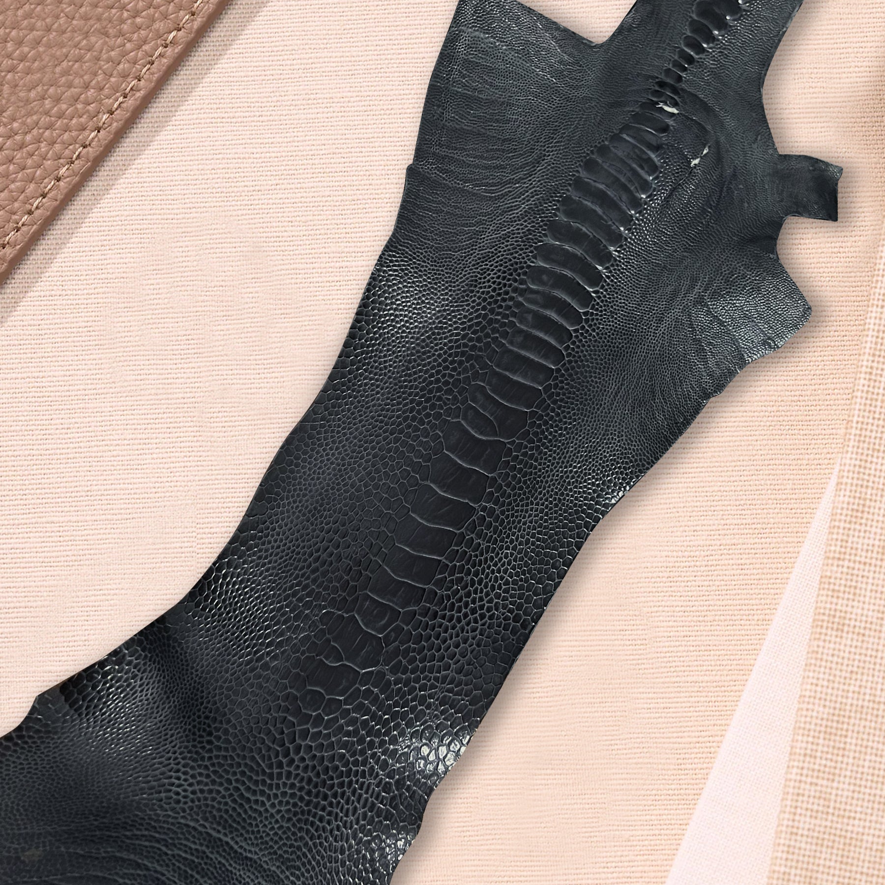 Material : Genuine Ostrich Leg skin from Klein Karoo farms in South African and is tanned in Germany. We cut a strap diagonally across the skin to include both the smaller and larger scale. For exceptional all-day comfort, and durability, our watch straps are lined with calf leather.