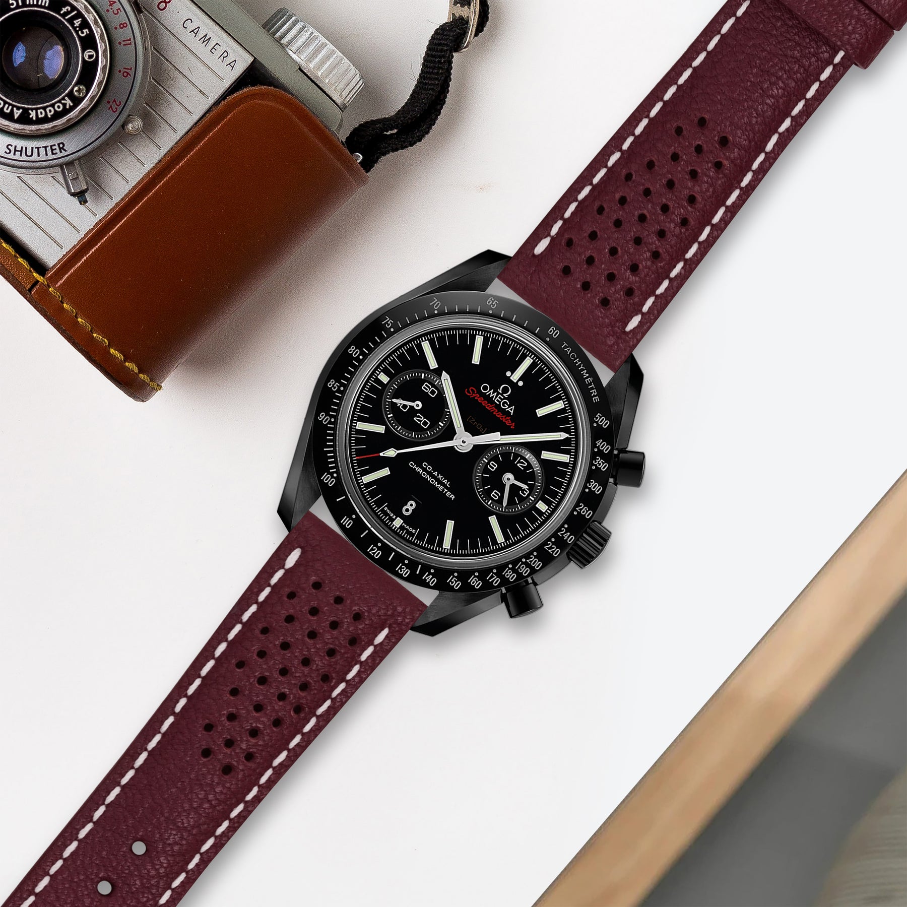 Description : Inspired by the sporty times of the 70’s, these racing straps are an essential to make any sport watch look even cooler. The holes make the strap lighter and more breathable, ideal for warm conditions where you want the comfy feel of a leather strap but don’t want the whole leather feel.