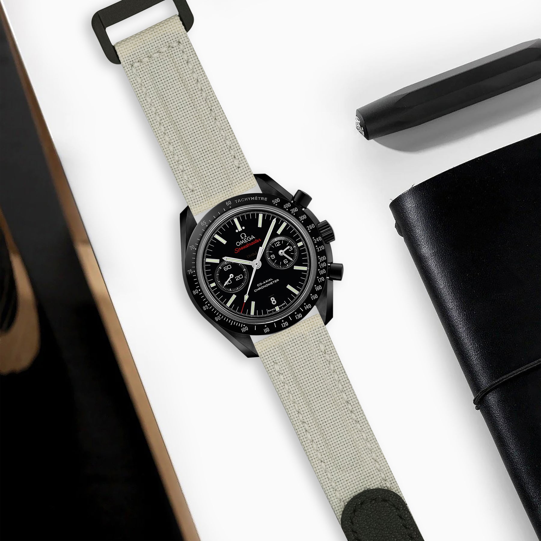 Omega Dark Side Of The Moon Straps - Velcro Canvas Extreme Padded Broken White