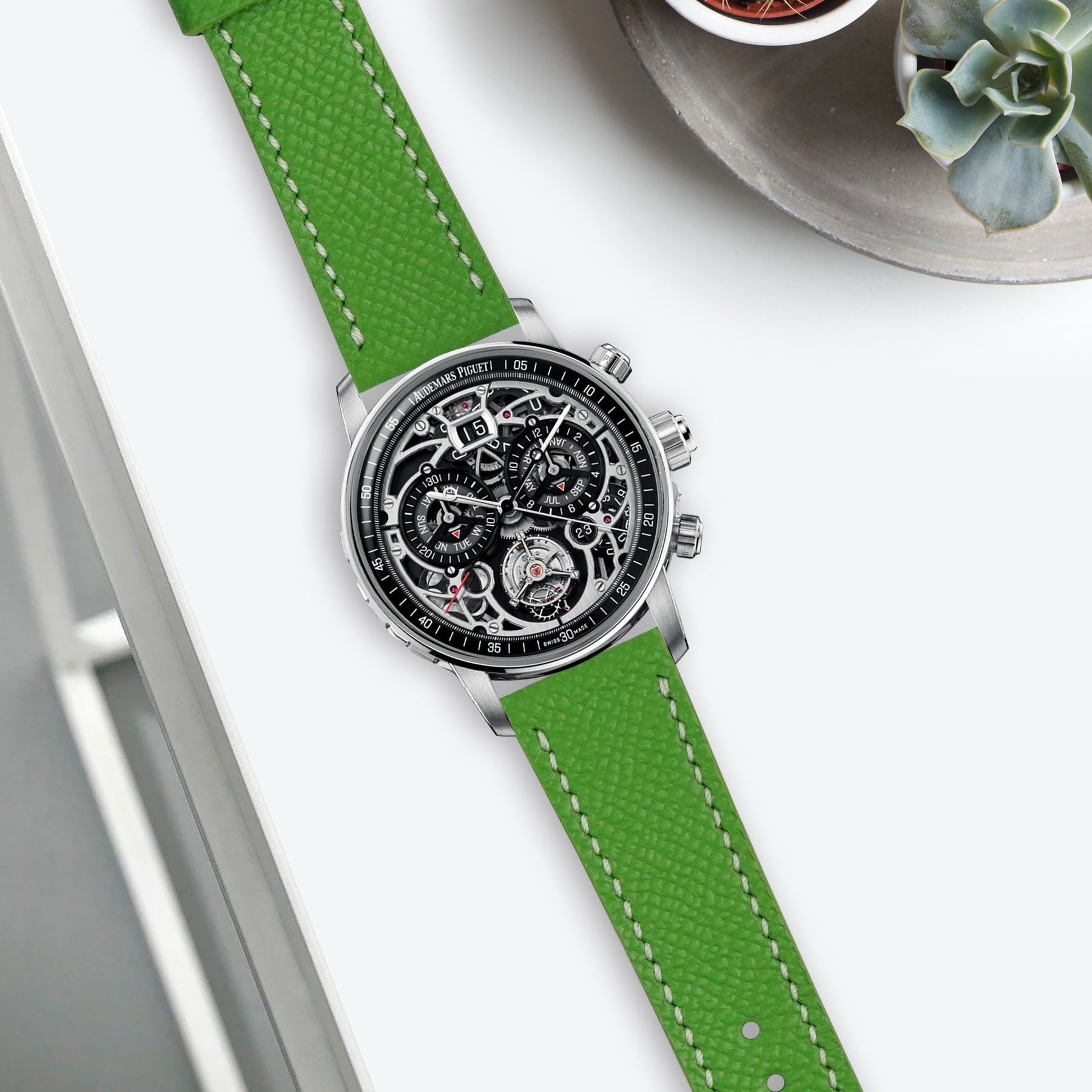Description : The Audemars Piguet Code 11.59 is known for its modern and elegant design. Our Epsom are made to match this watch perfectly, giving you a simple way to refresh the look while keeping it true to its original style. Crafted to our exact specifications, each strap offers a precise fit, a comfortable feel, and a clean finish on the wrist.