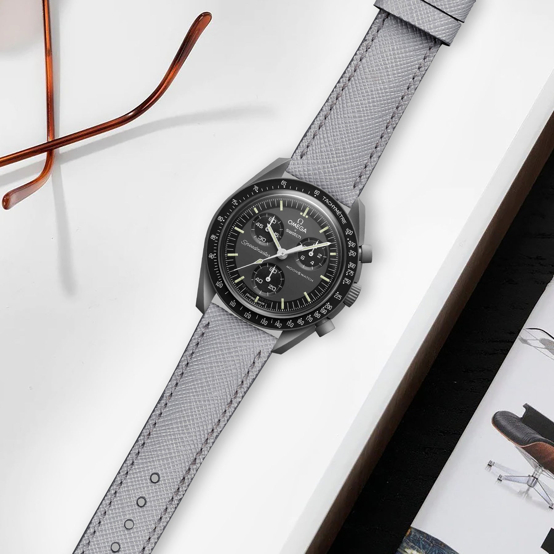 Omega MoonSwatch x Swatch Straps - Saffiano Light Grey