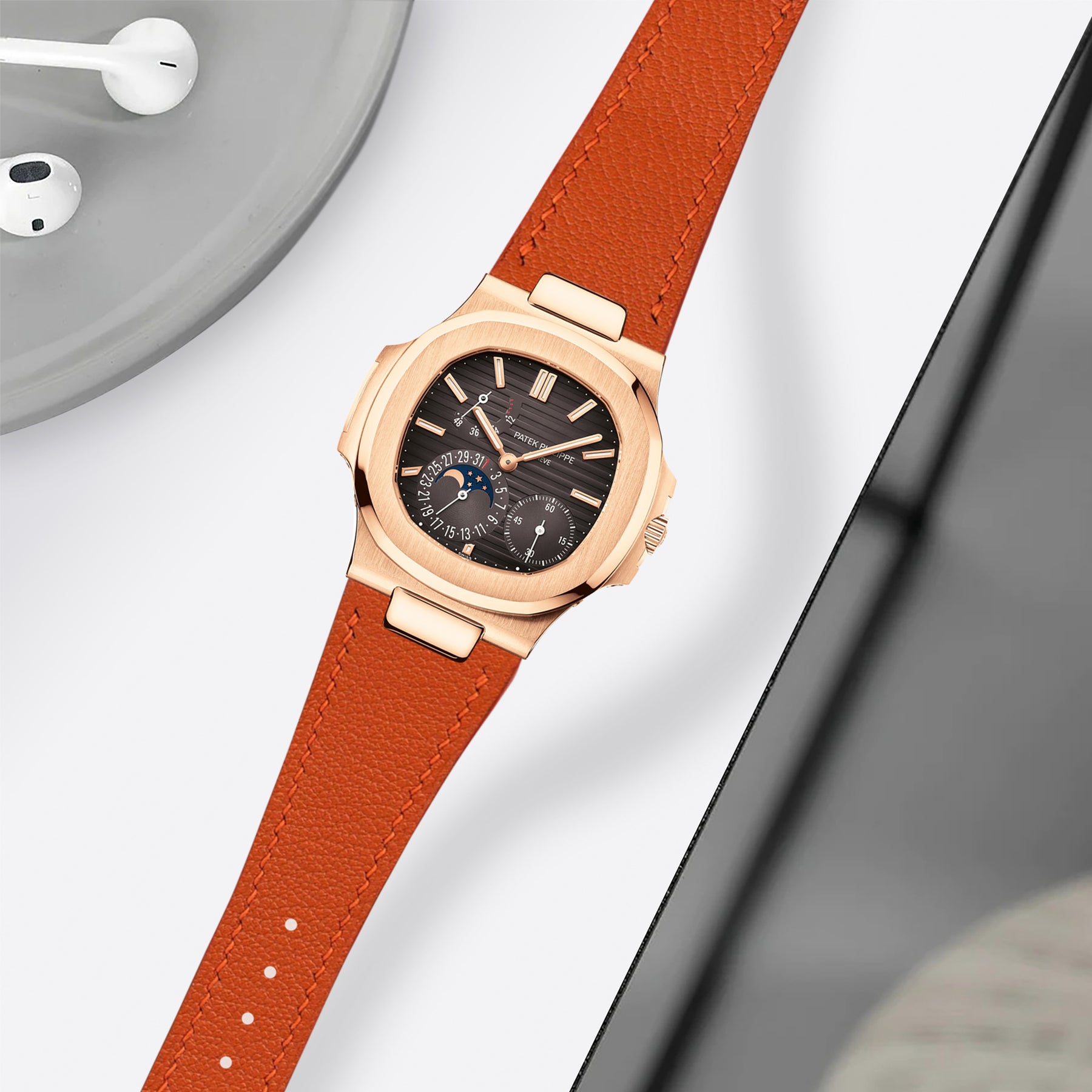 Patek Nautilus Straps - Chevre Orange