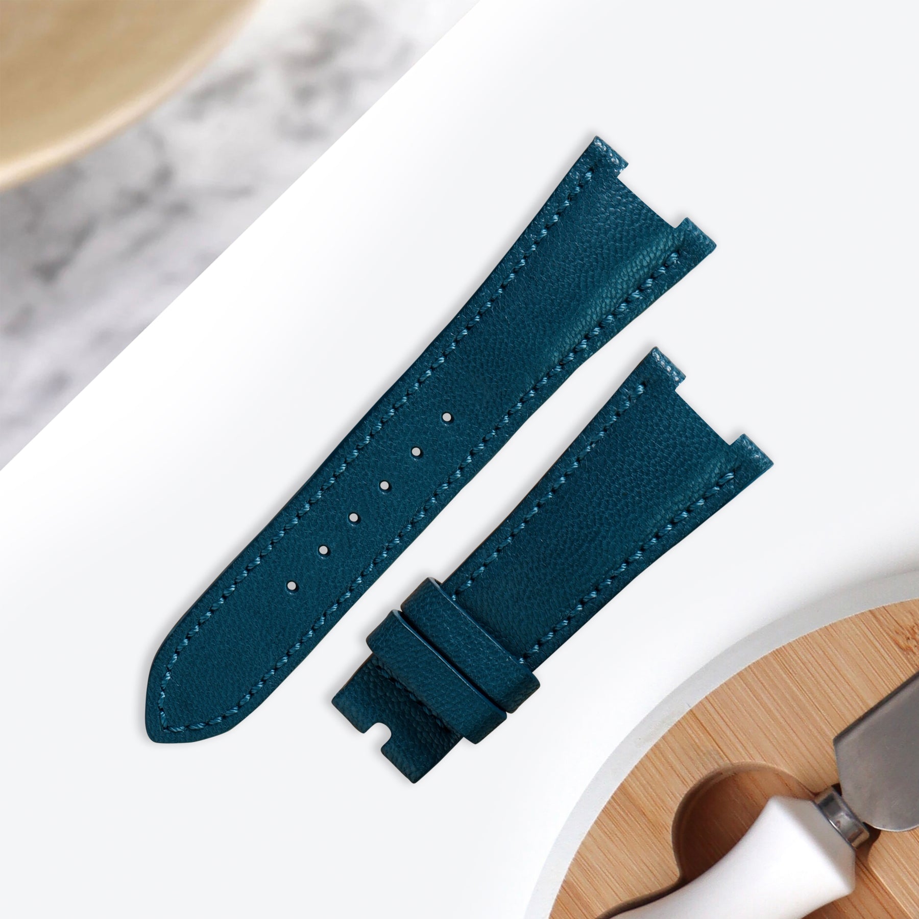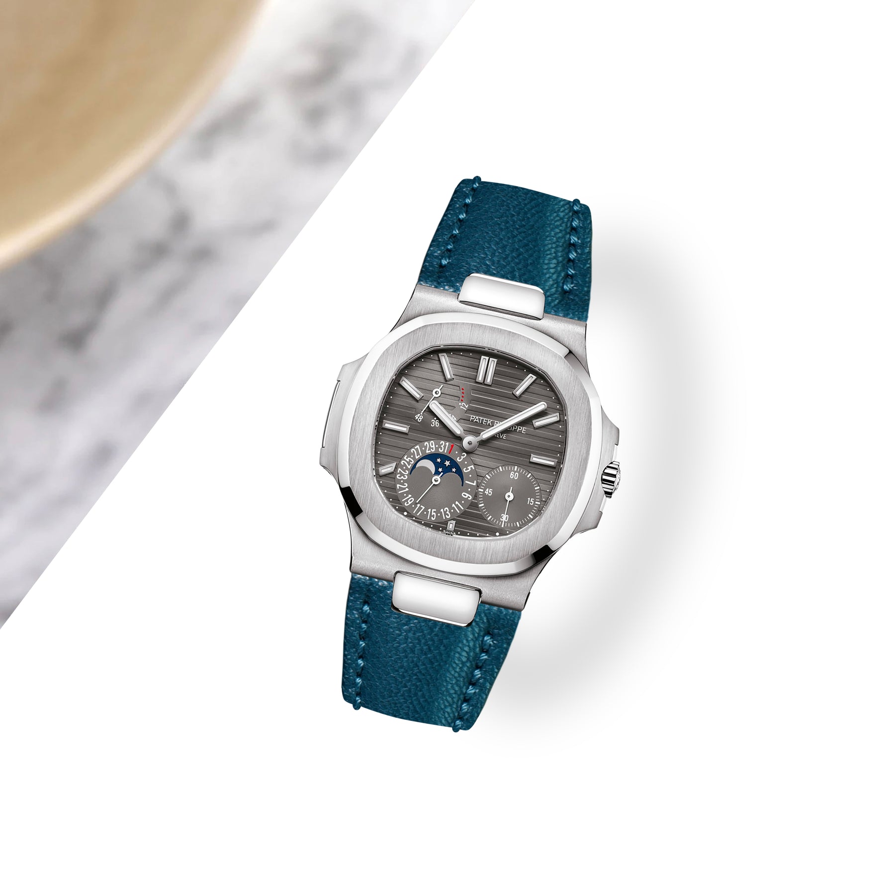 Patek Nautilus Straps - Chevre Pacific Blue