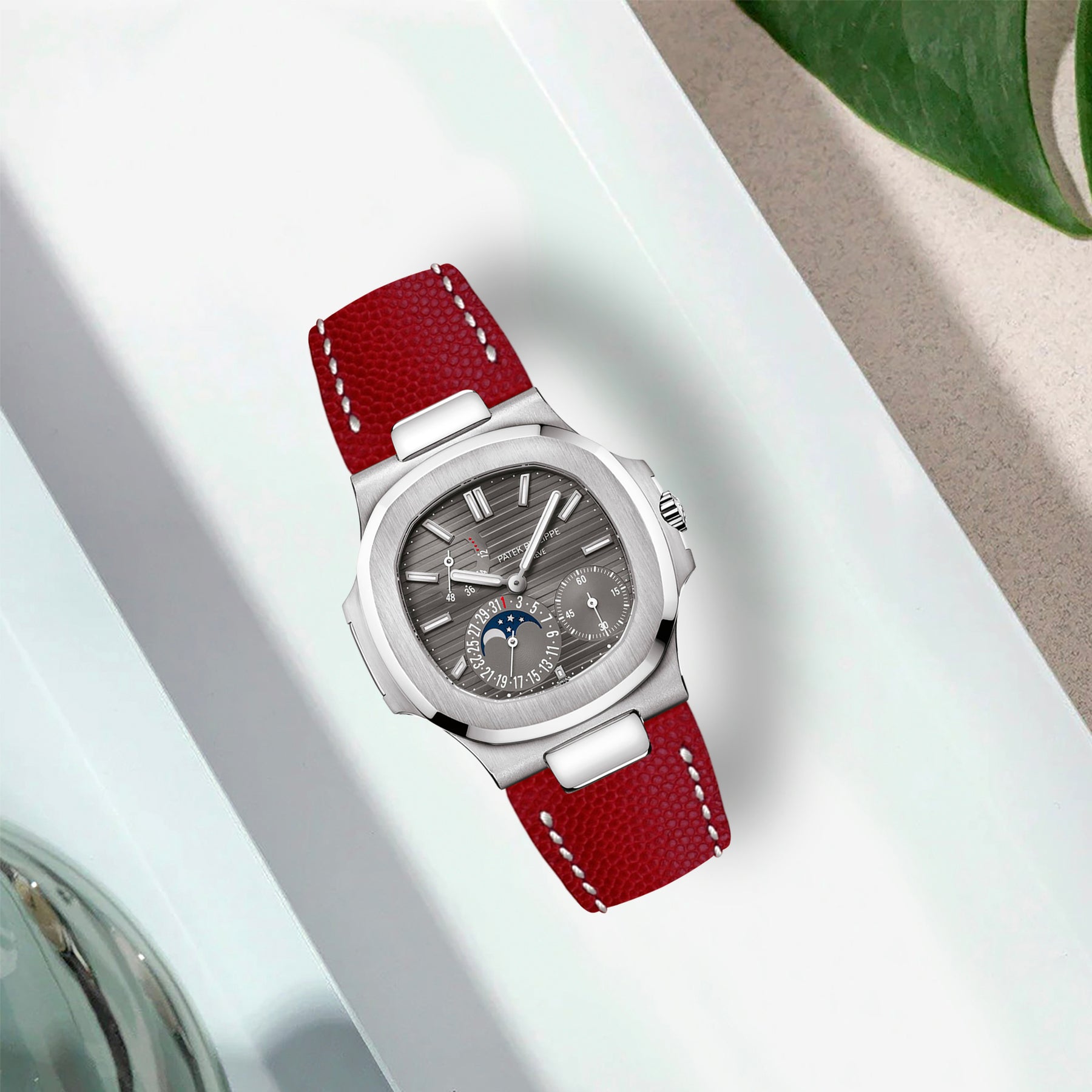 Patek Nautilus Straps - Caviar Red