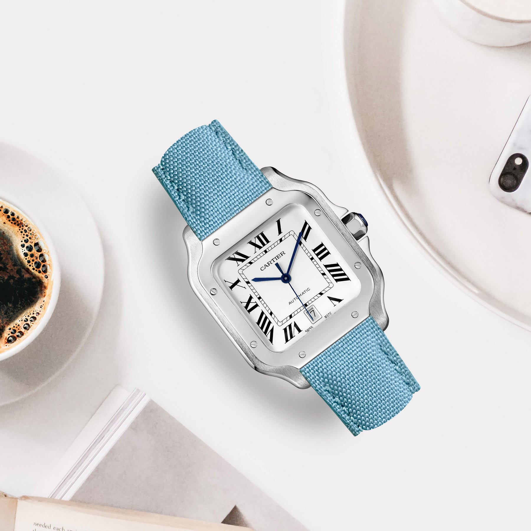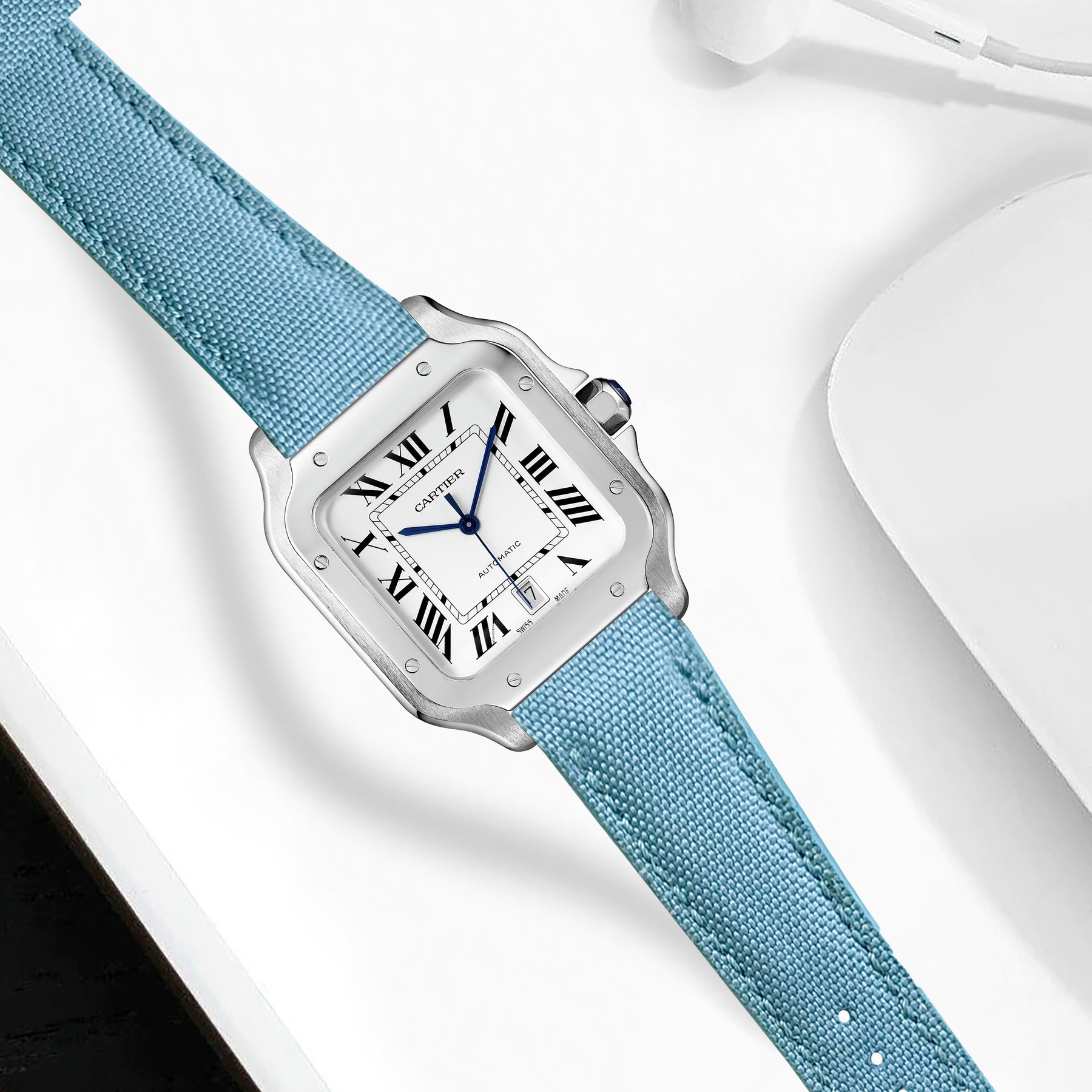 Cartier New Santos Quick Release Straps - Canvas Sky Blue