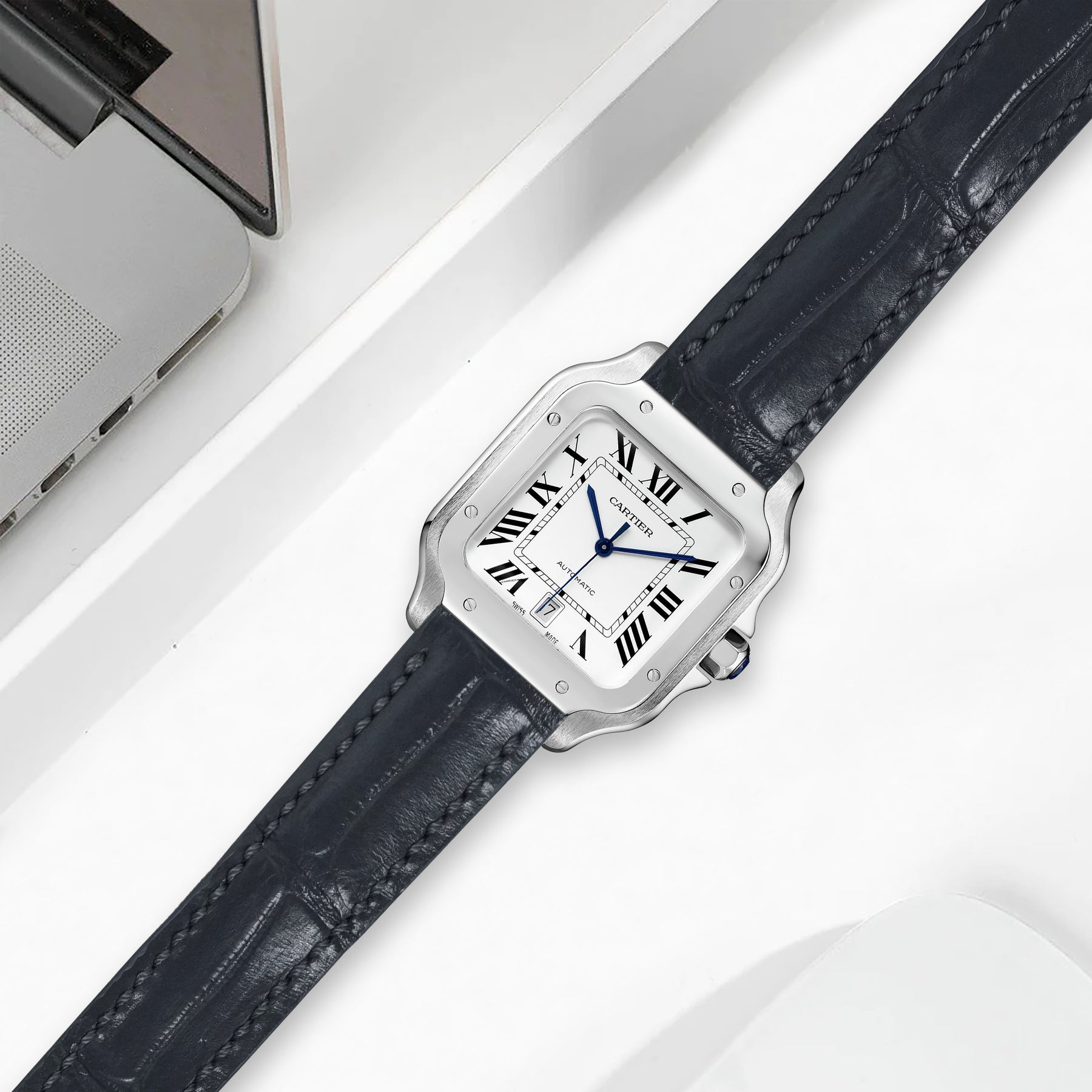 Previously, you could only get these straps through Cartier. After research & development we are now proud to be able to offer integrated straps that is a perfect fit for the Cartier Santos de Cartier from Medium, Large and also XL versions too.