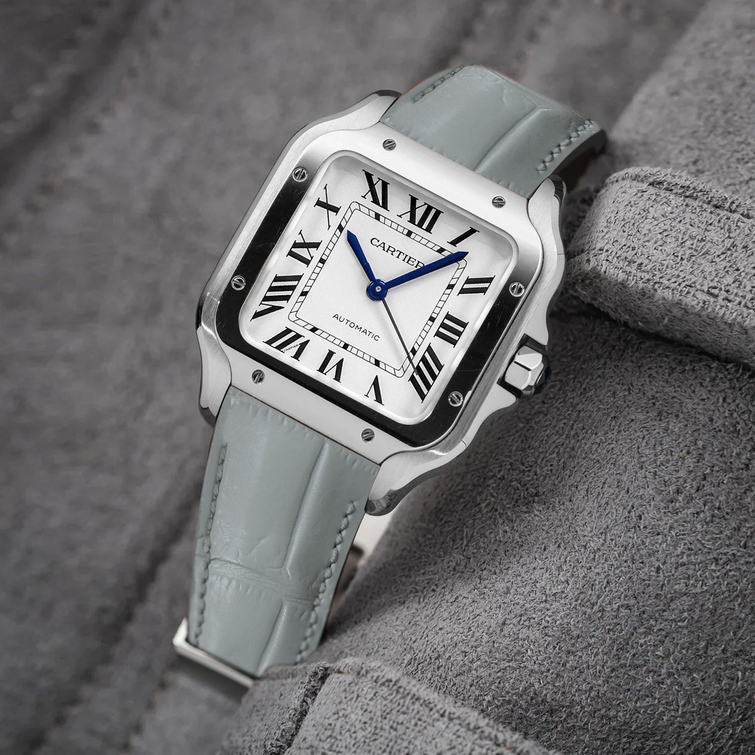 Cartier New Santos Quick Release Straps - Croco Light Grey