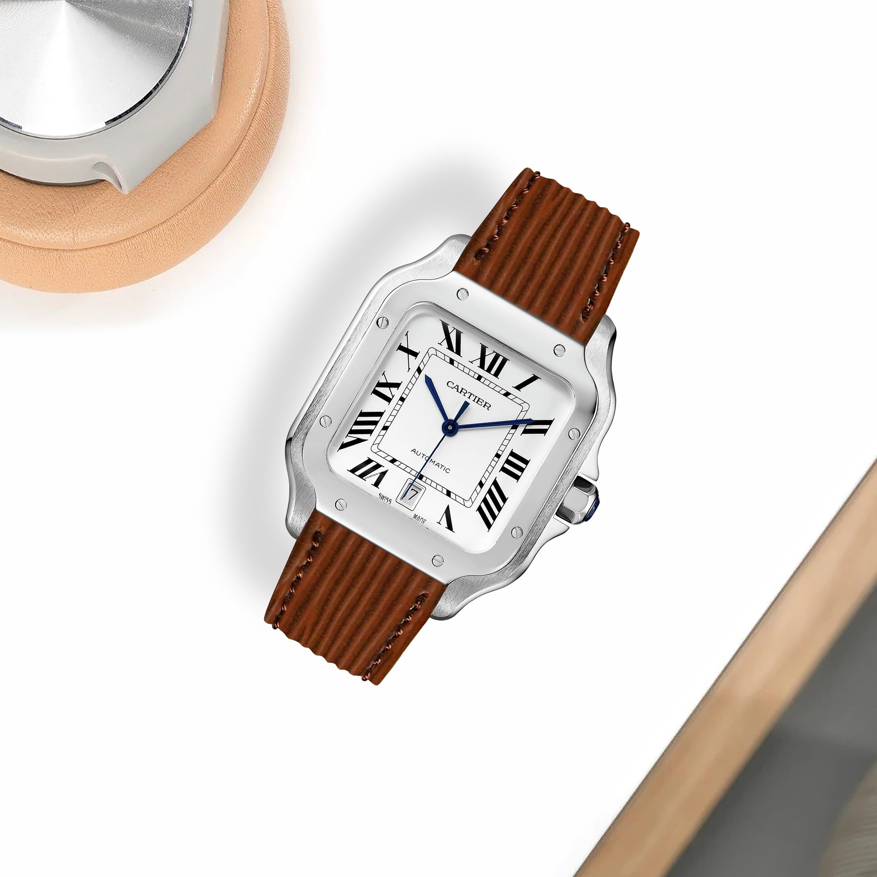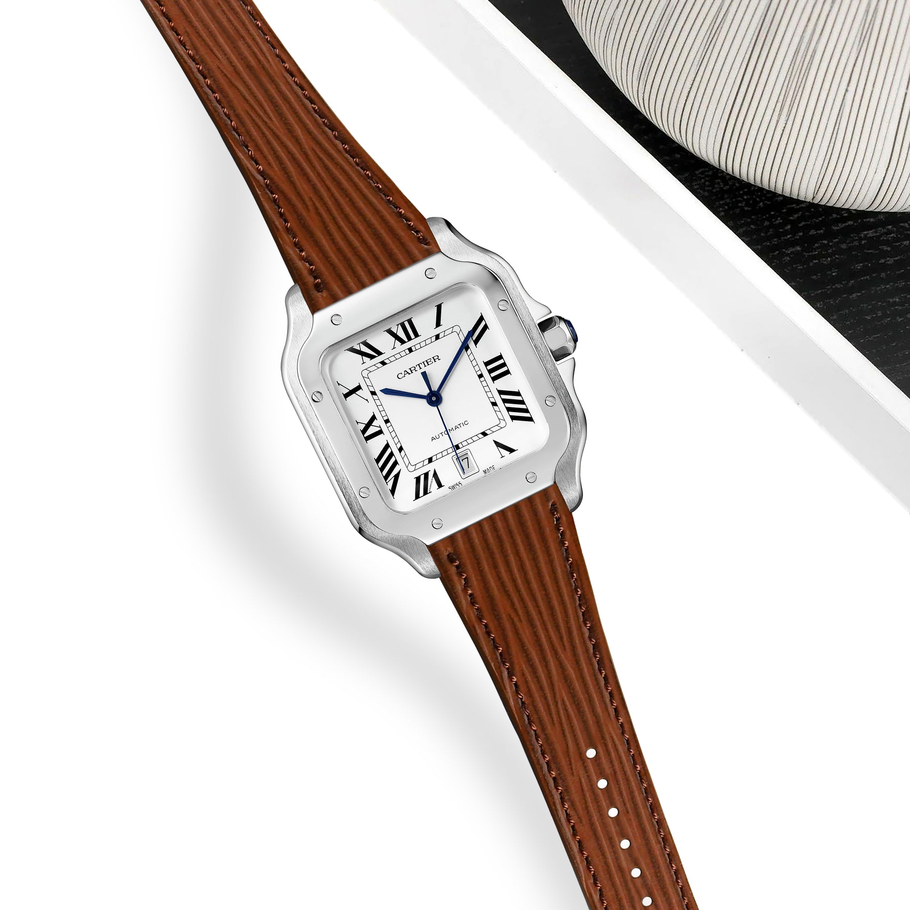 Previously, you could only get these straps through Cartier. After research & development we are now proud to be able to offer integrated straps that is a perfect fit for the Cartier Santos de Cartier from Medium, Large and also XL versions too.