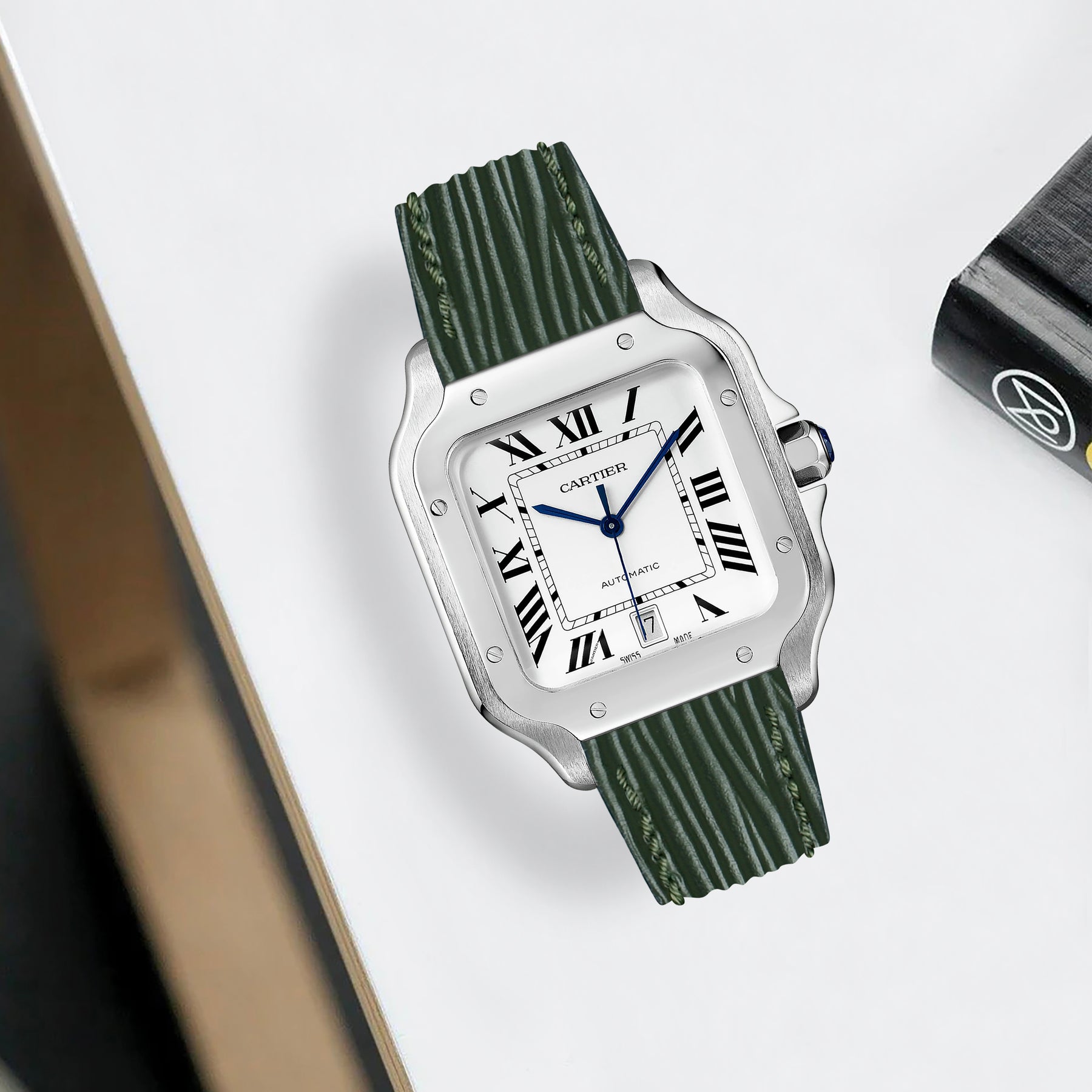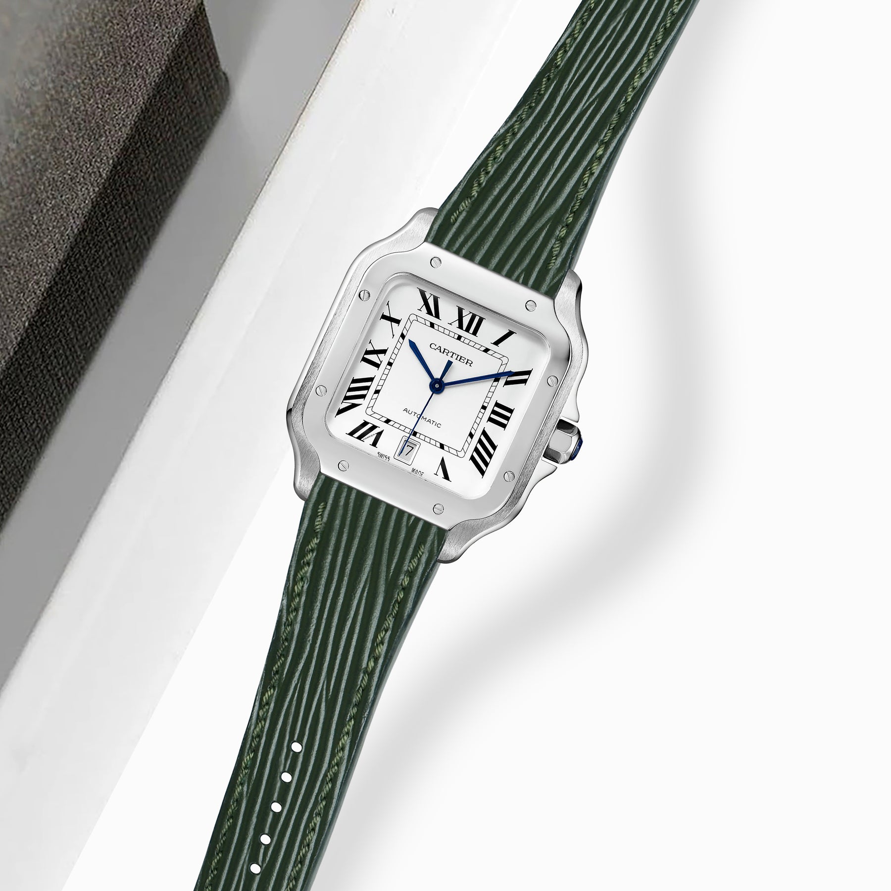 Previously, you could only get these straps through Cartier. After research & development we are now proud to be able to offer integrated straps that is a perfect fit for the Cartier Santos de Cartier from Medium, Large and also XL versions too.