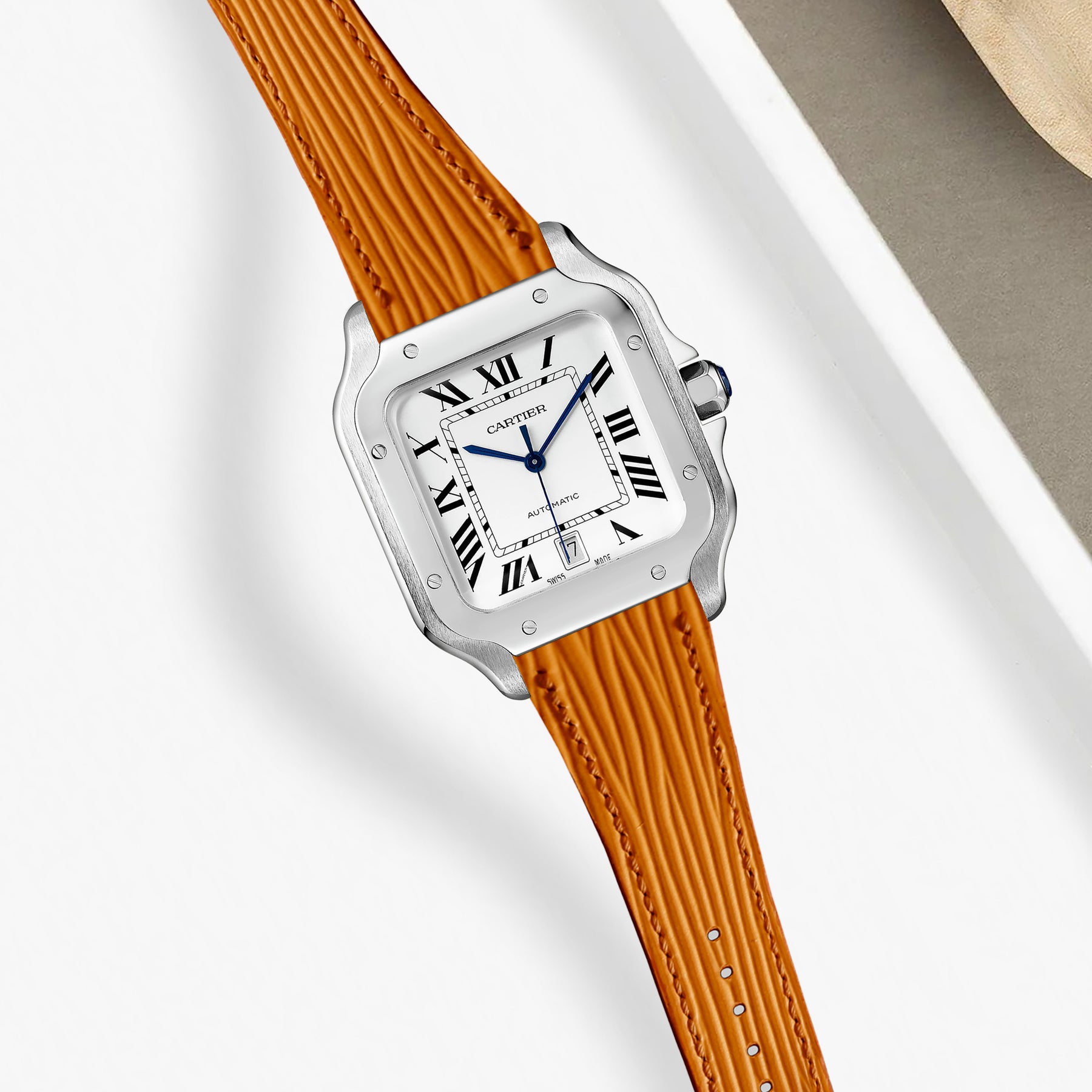 Previously, you could only get these straps through Cartier. After research & development we are now proud to be able to offer integrated straps that is a perfect fit for the Cartier Santos de Cartier from Medium, Large and also XL versions too.