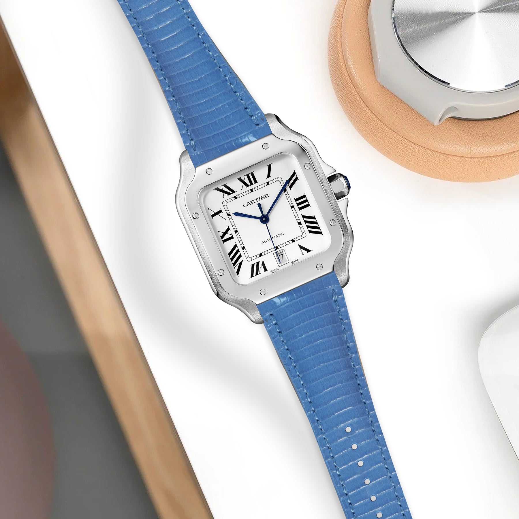 Cartier New Santos Quick Release Straps - Lizard Baby Blue