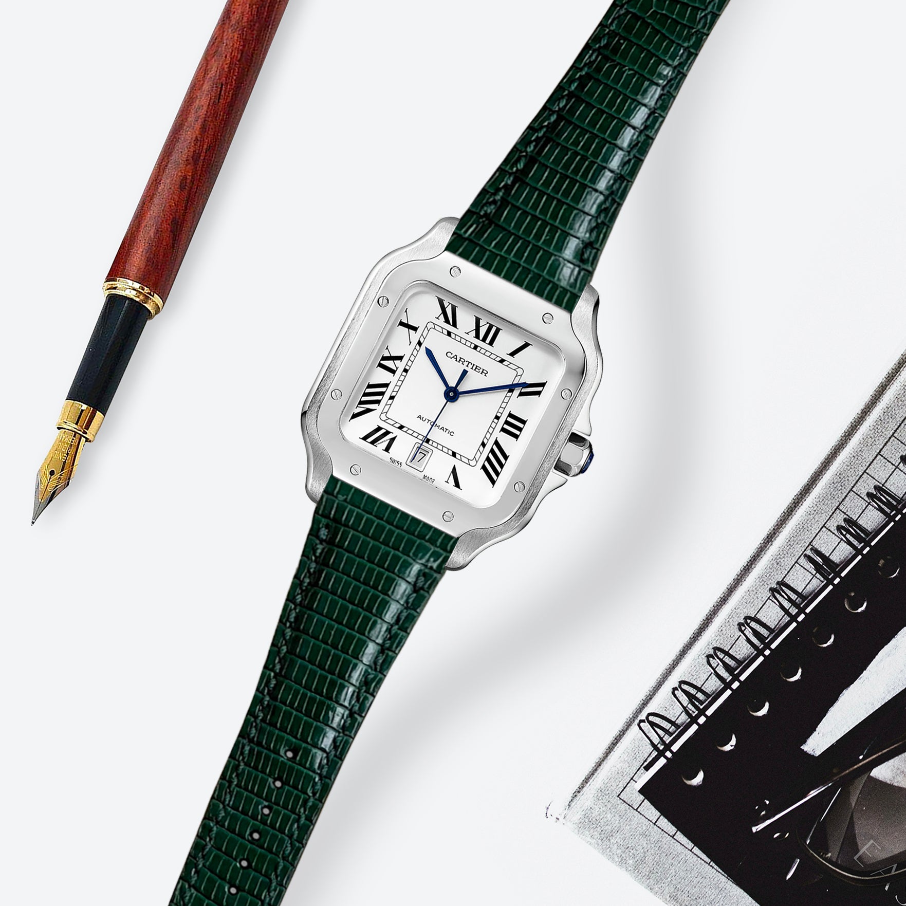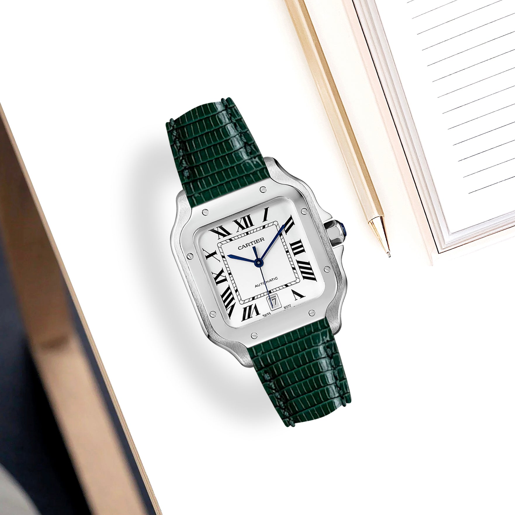 Cartier New Santos Quick Release Straps - Lizard Dark Green