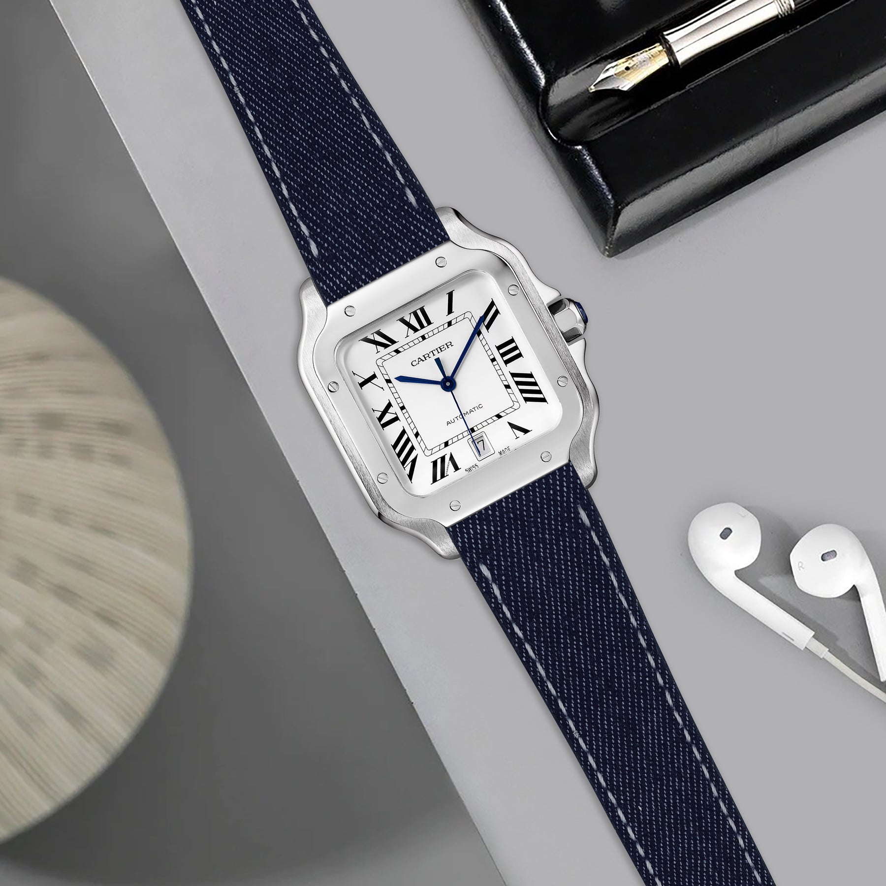Cartier New Santos Quick Release Straps - Denim New Ink