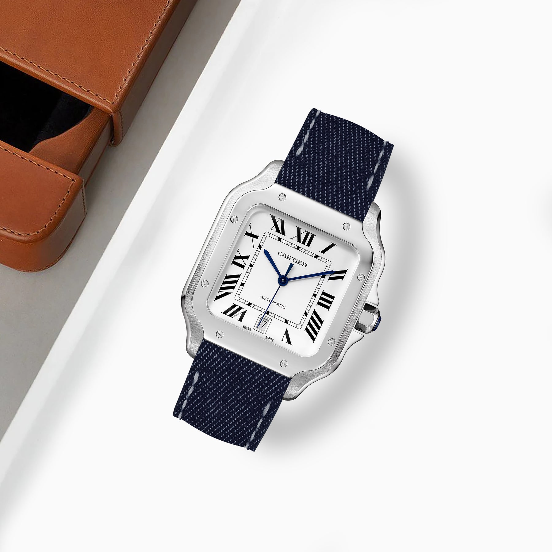 Previously, you could only get these straps through Cartier. After research & development we are now proud to be able to offer integrated straps that is a perfect fit for the Cartier Santos de Cartier from Medium, Large and also XL versions too.