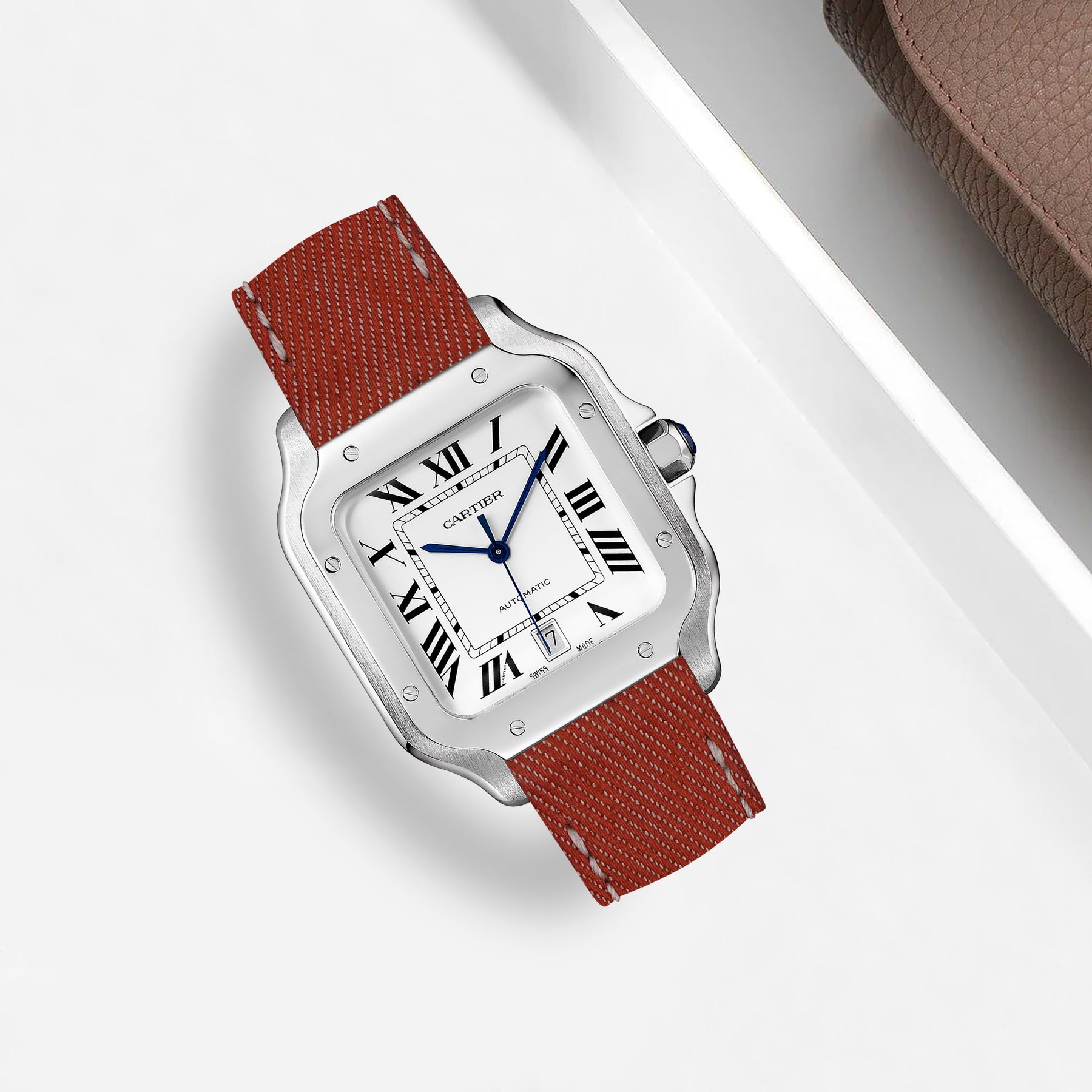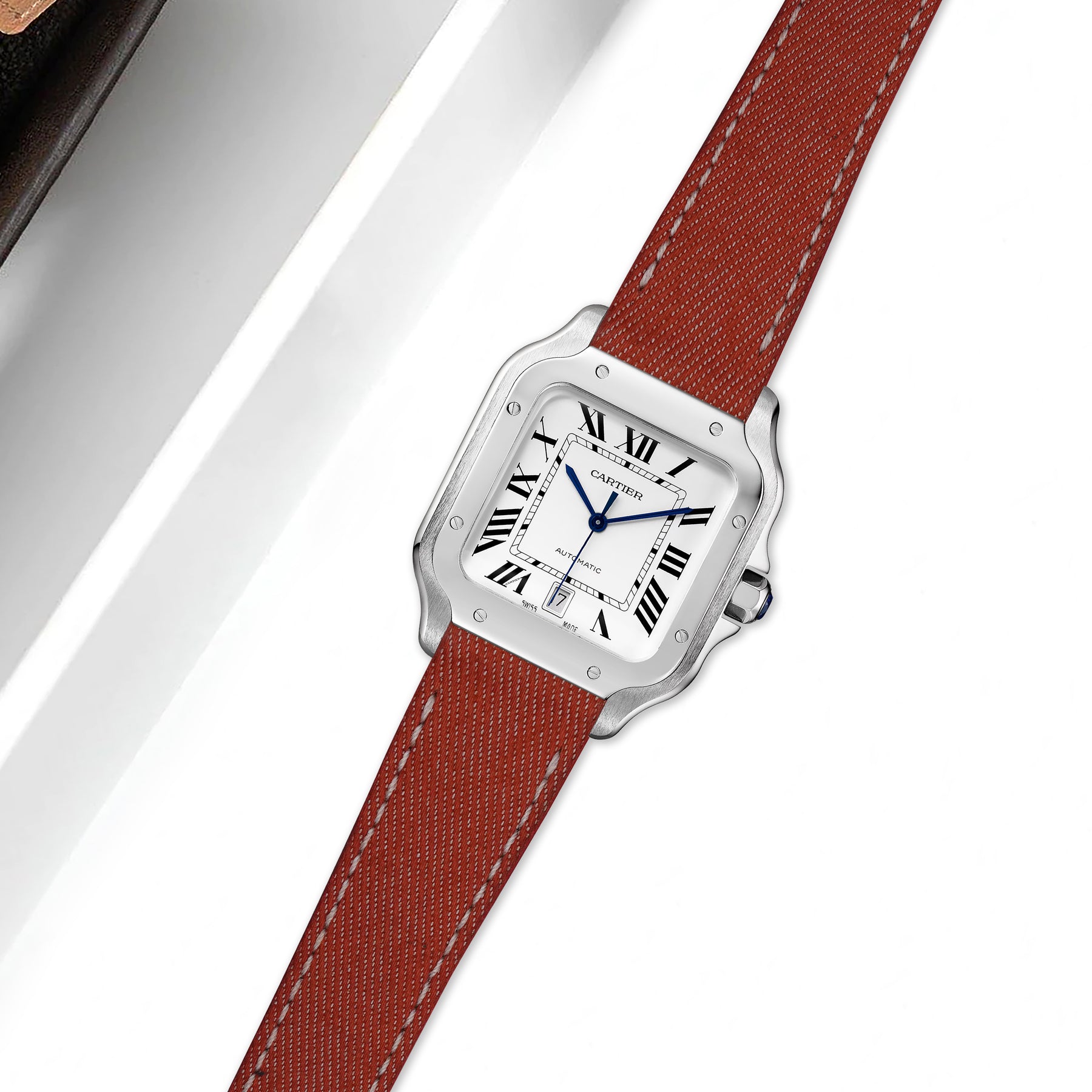 Previously, you could only get these straps through Cartier. After research & development we are now proud to be able to offer integrated straps that is a perfect fit for the Cartier Santos de Cartier from Medium, Large and also XL versions too.