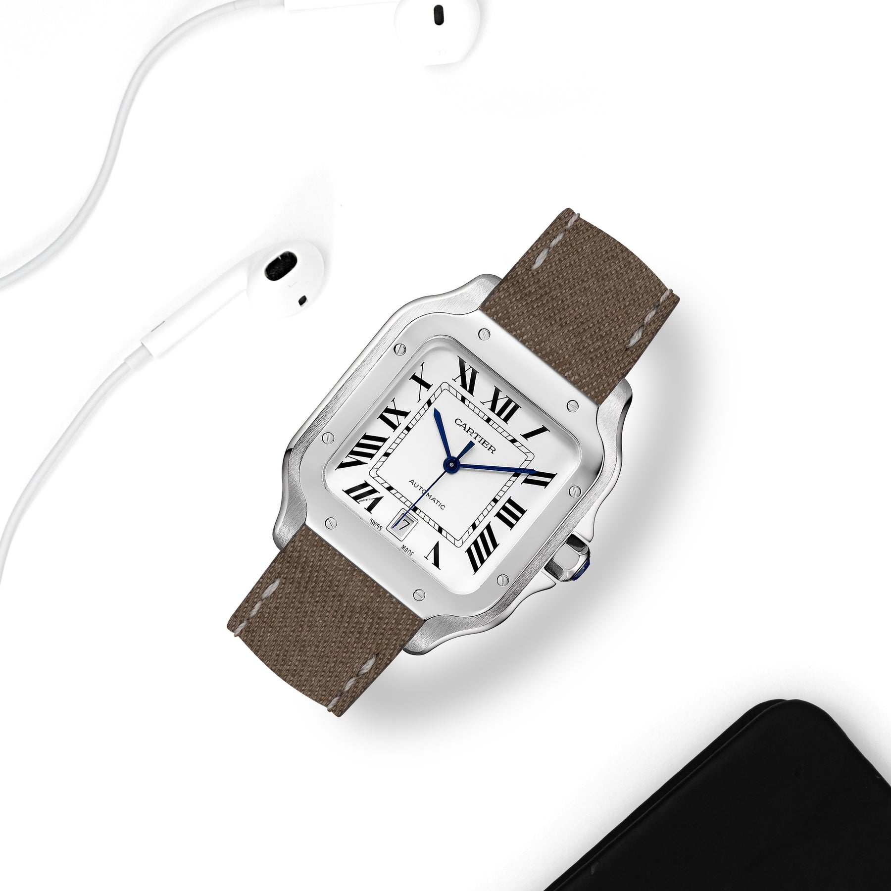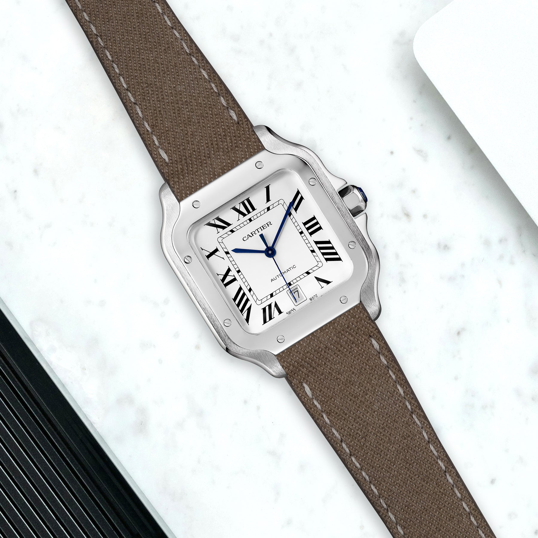 Previously, you could only get these straps through Cartier. After research & development we are now proud to be able to offer integrated straps that is a perfect fit for the Cartier Santos de Cartier from Medium, Large and also XL versions too.
