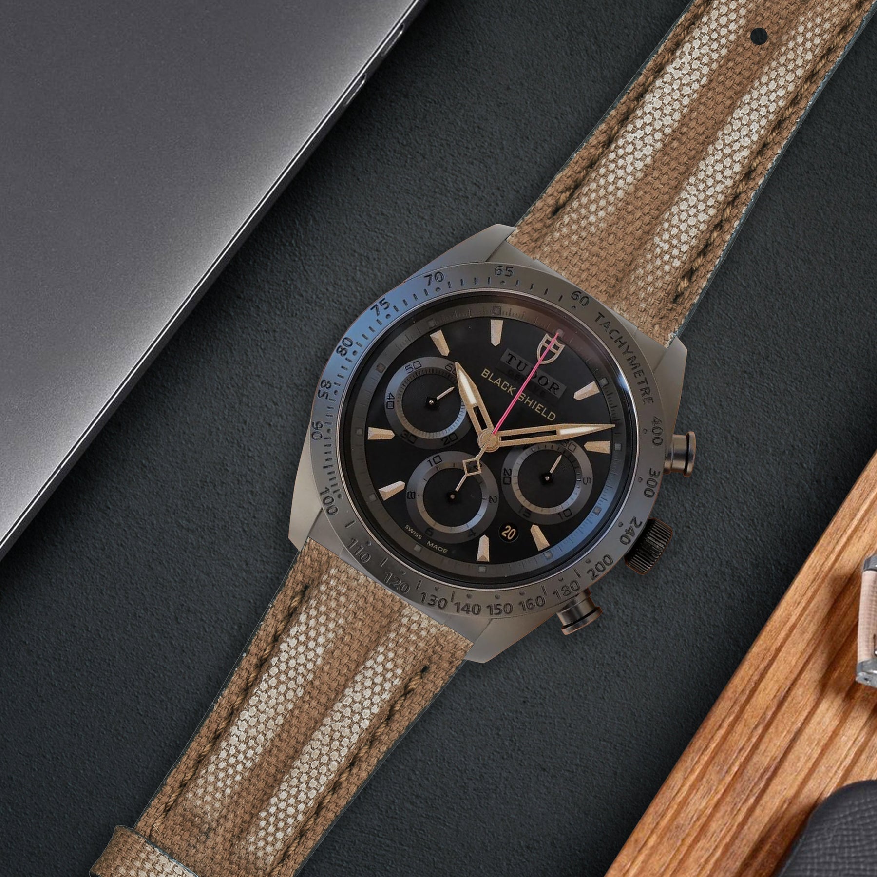 Material : Crafted from highly durable canvas and lined with soft, supple calf leather on the underside to gently hug your wrist for all-day comfort even in hot, humid weather.