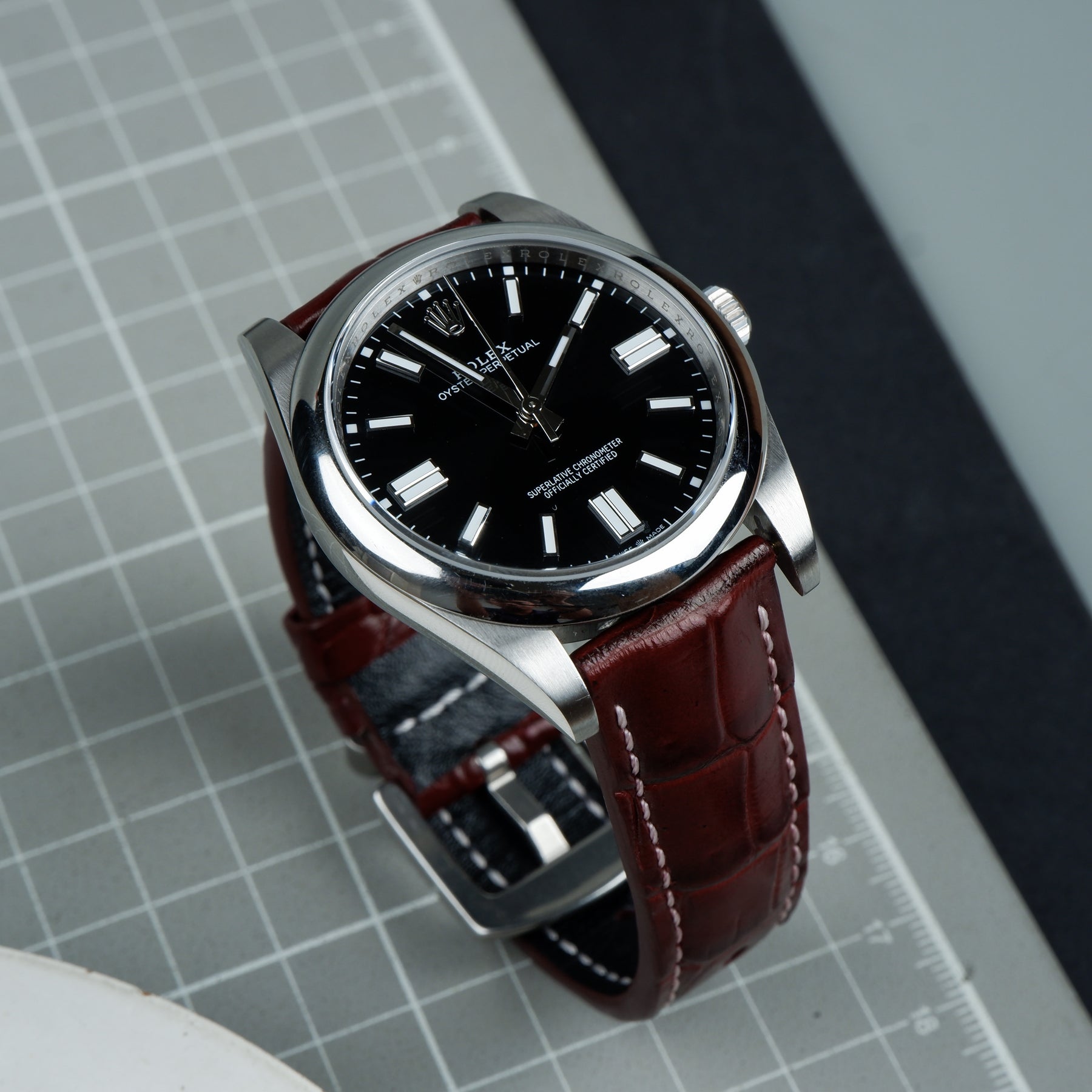 Rolex Oyster Perpetual Straps - Croco Bordeaux