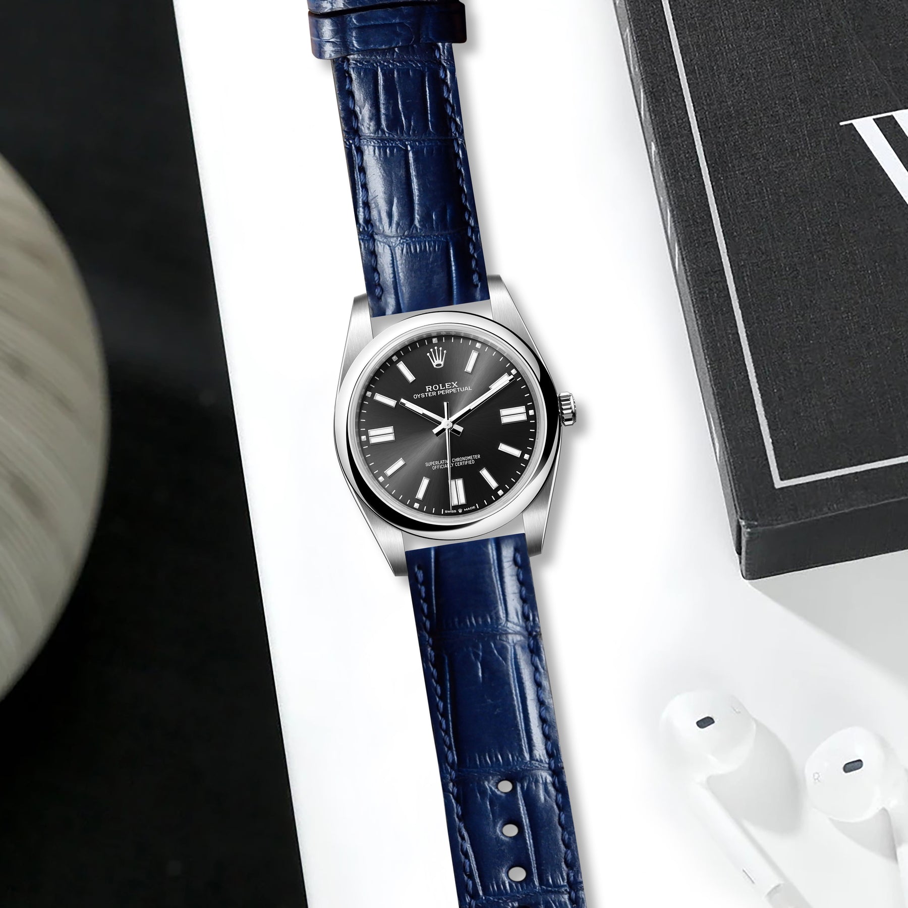 Rolex Oyster Perpetual Straps - Croco Navy Blue