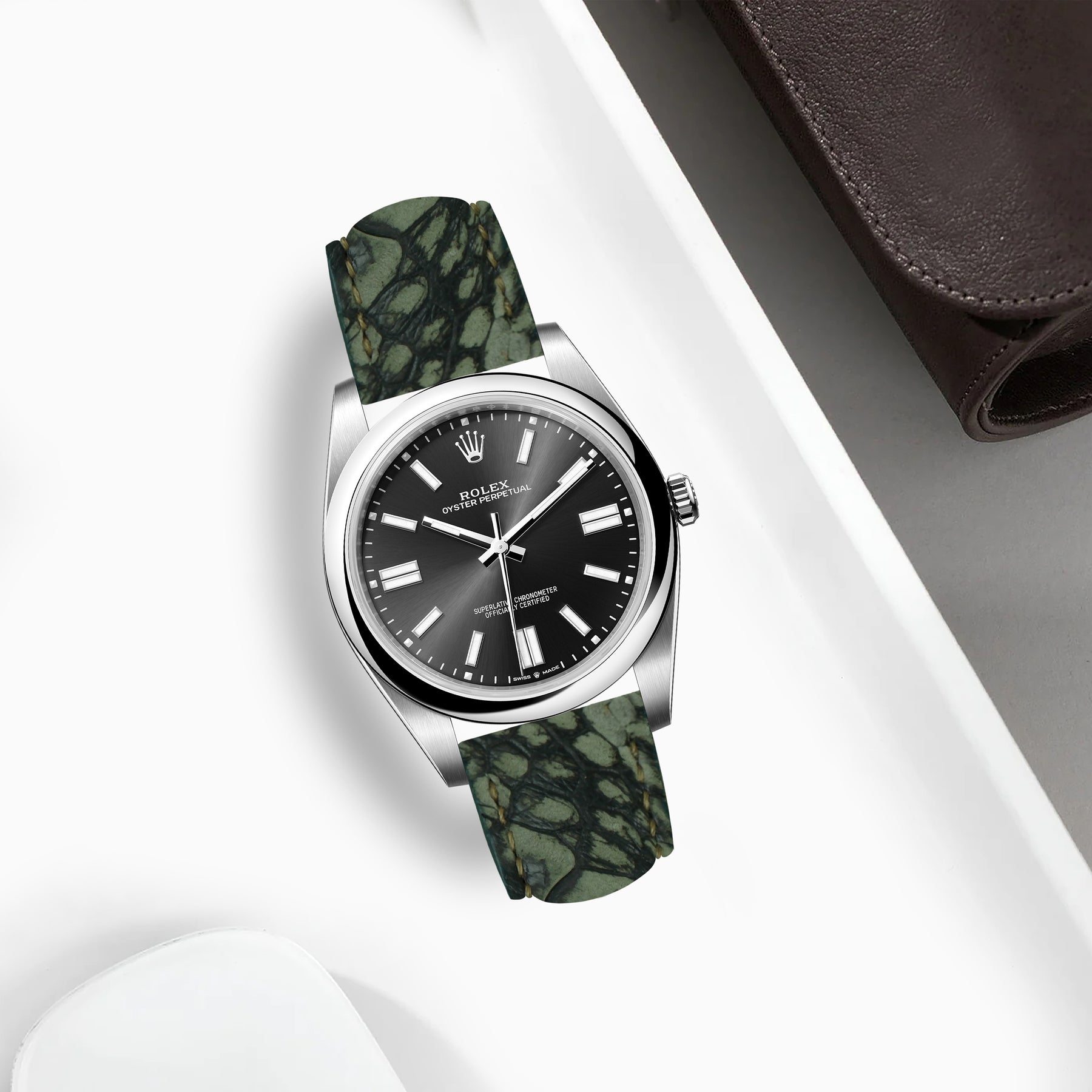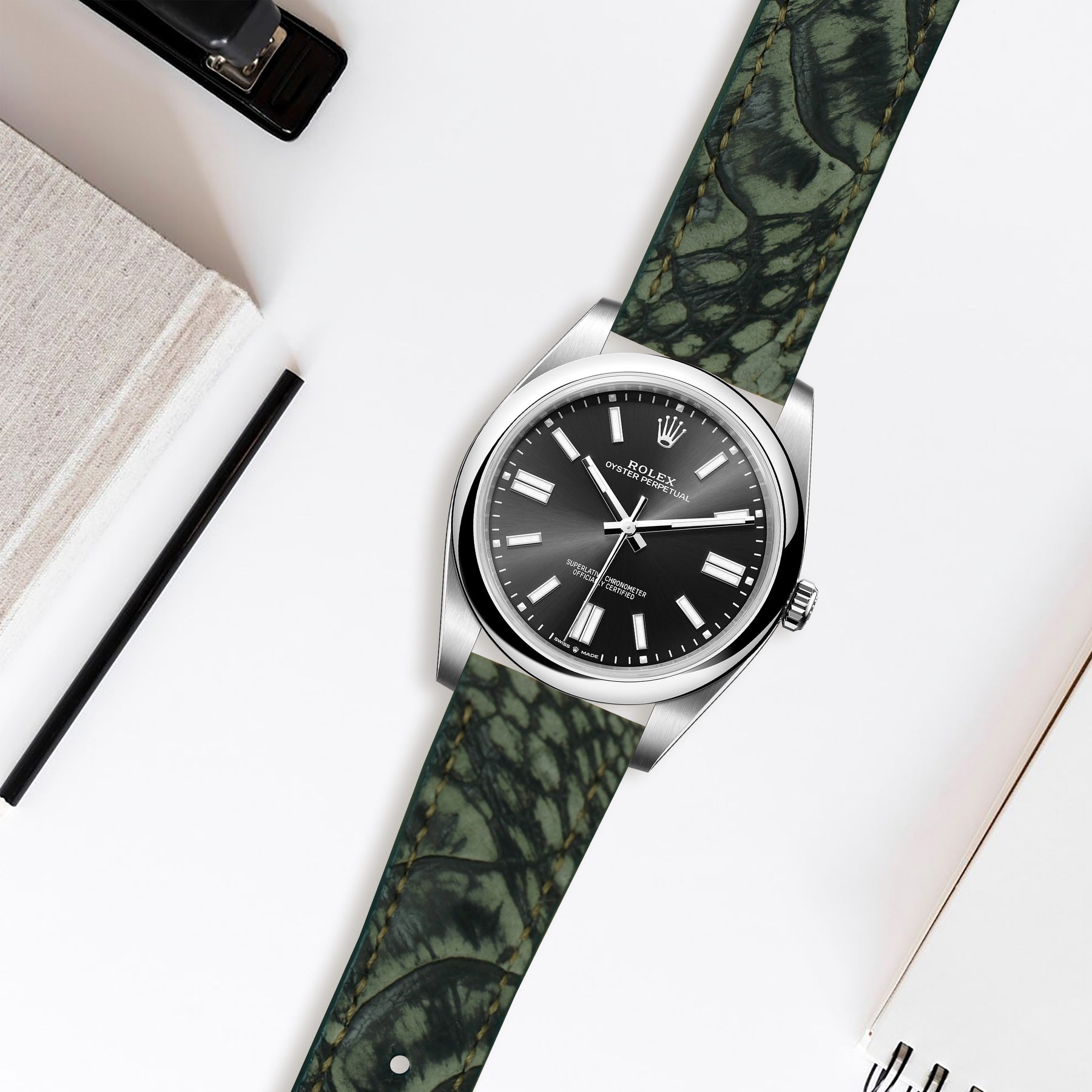 Rolex Oyster Perpetual Straps - Ostrich Leg Nubuck Green