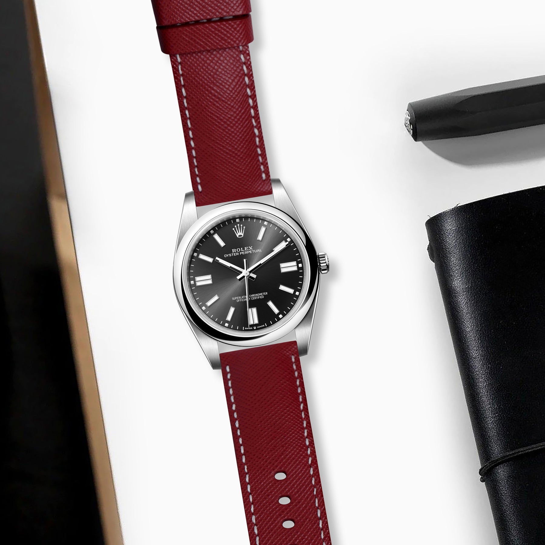 Rolex Oyster Perpetual Straps - Saffiano Maroon