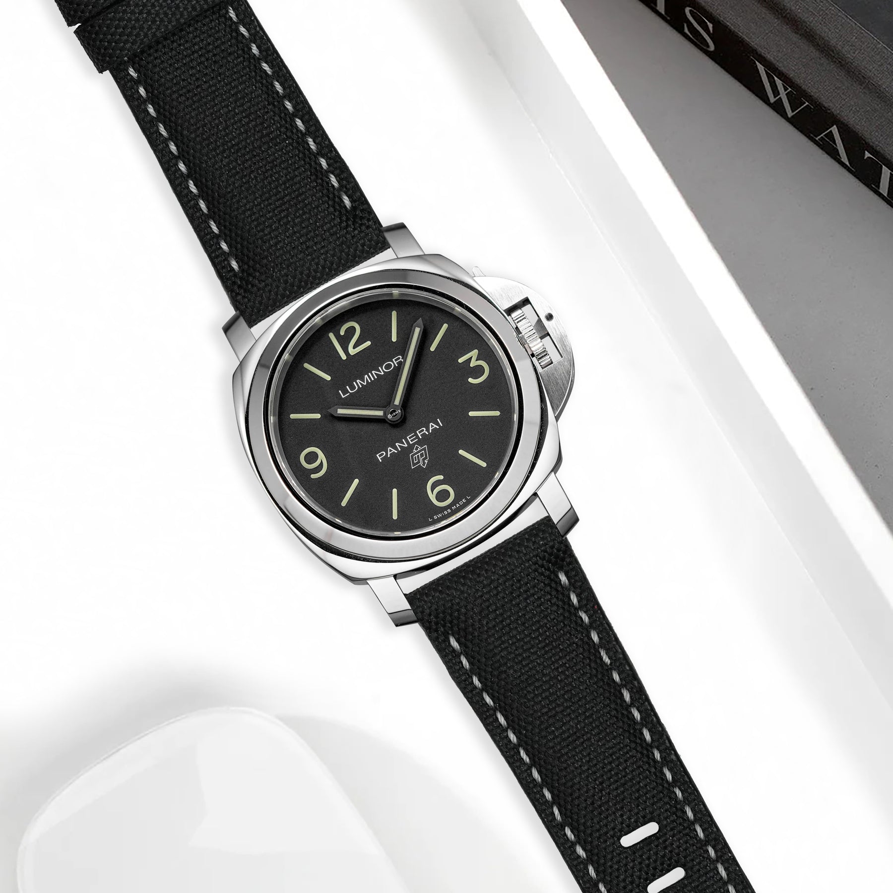 Panerai Luminor Straps - Canvas Black Grey Stitch