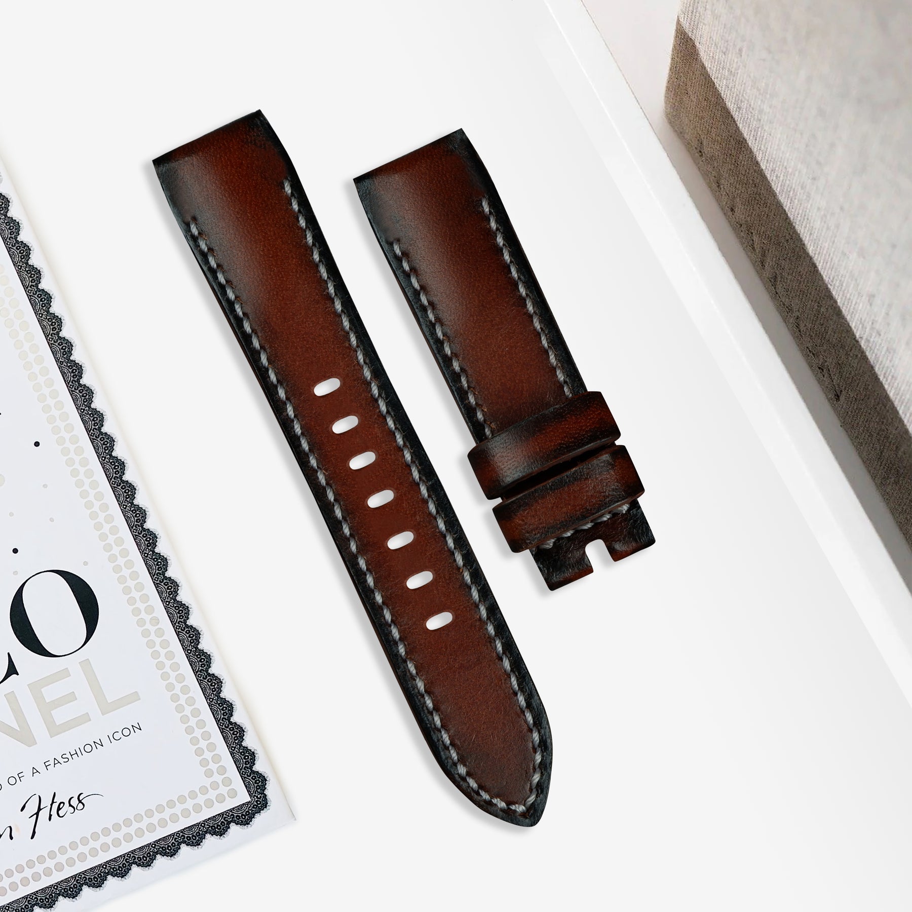 Brandishing a vintage feel, hand finished with luxuriant oils and waxes, our Chetau turns your Luminor Due into a strikingly classy look that pairs flawlessly with just about any style of dressing. A new shape has been specifically designed for this collection, with simple pressure applied on the button on the back of the strap near the attachment, it’s easy to hook and release the strap from the case. From vegetable tanned leather from Italian tannery soaked in a mixture of oils to produce a buttery smooth, soft and supple leather that will develop beautiful patina over time, making each strap unique and full of character.
