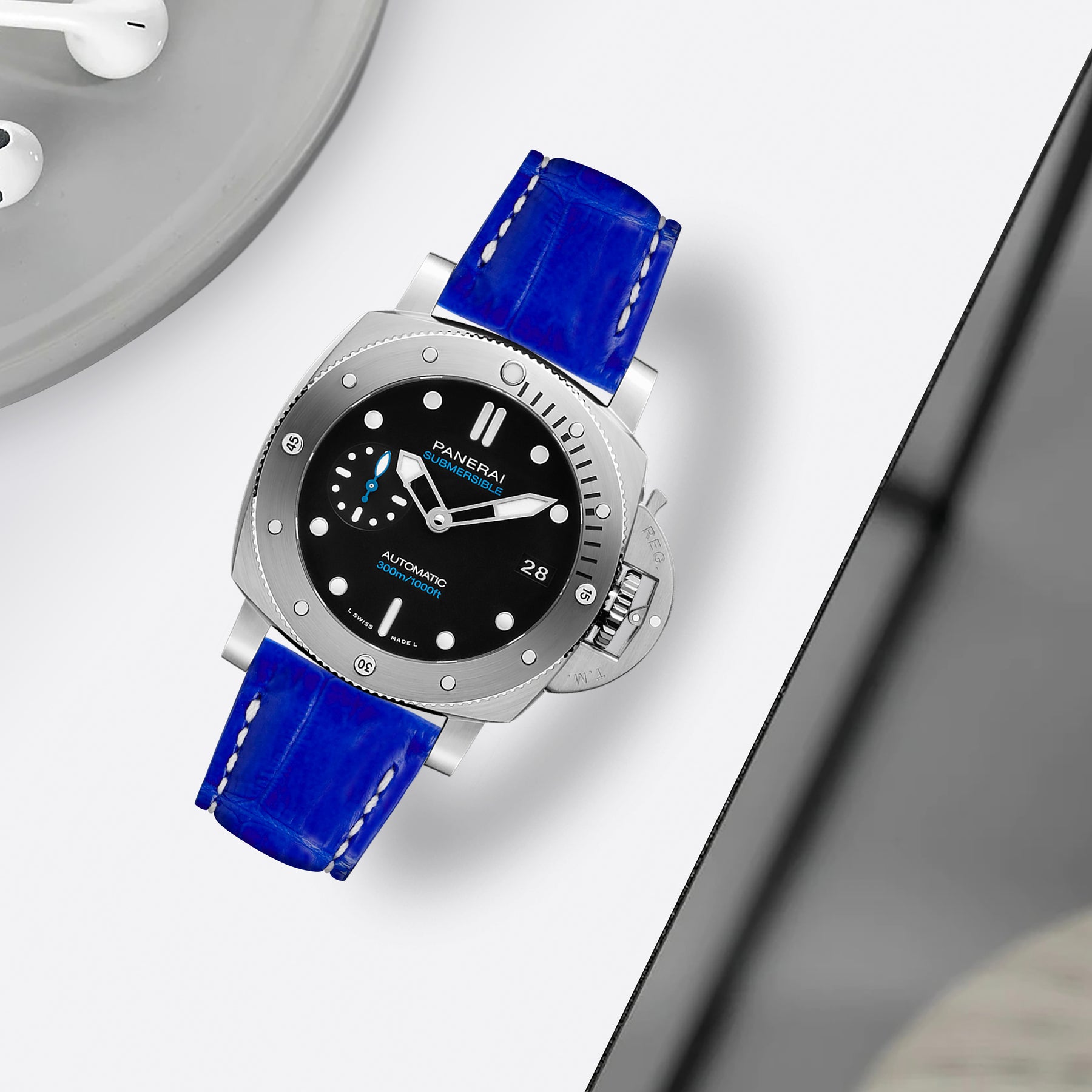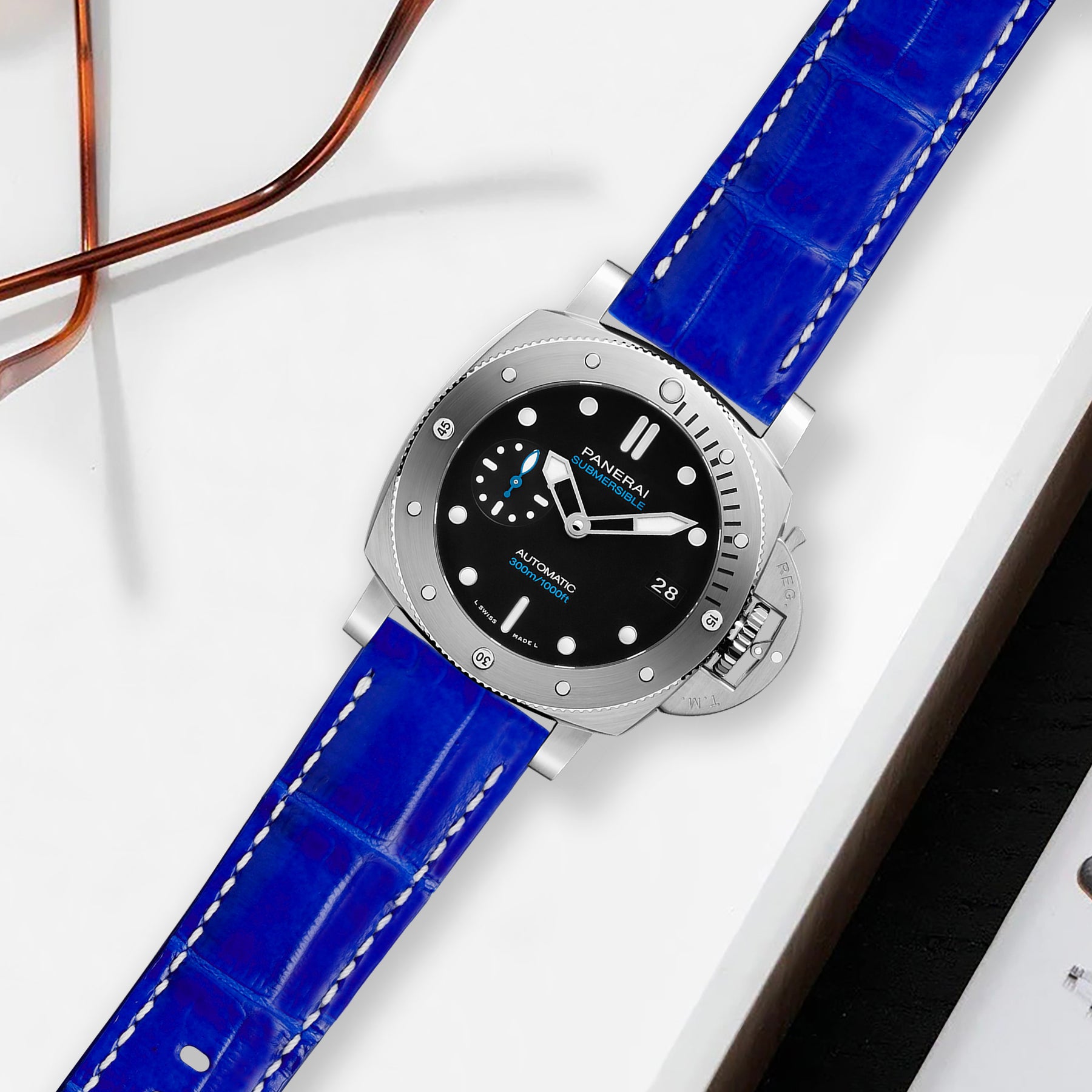 Panerai Submersible Straps - Croco Blue Batman White Stitch