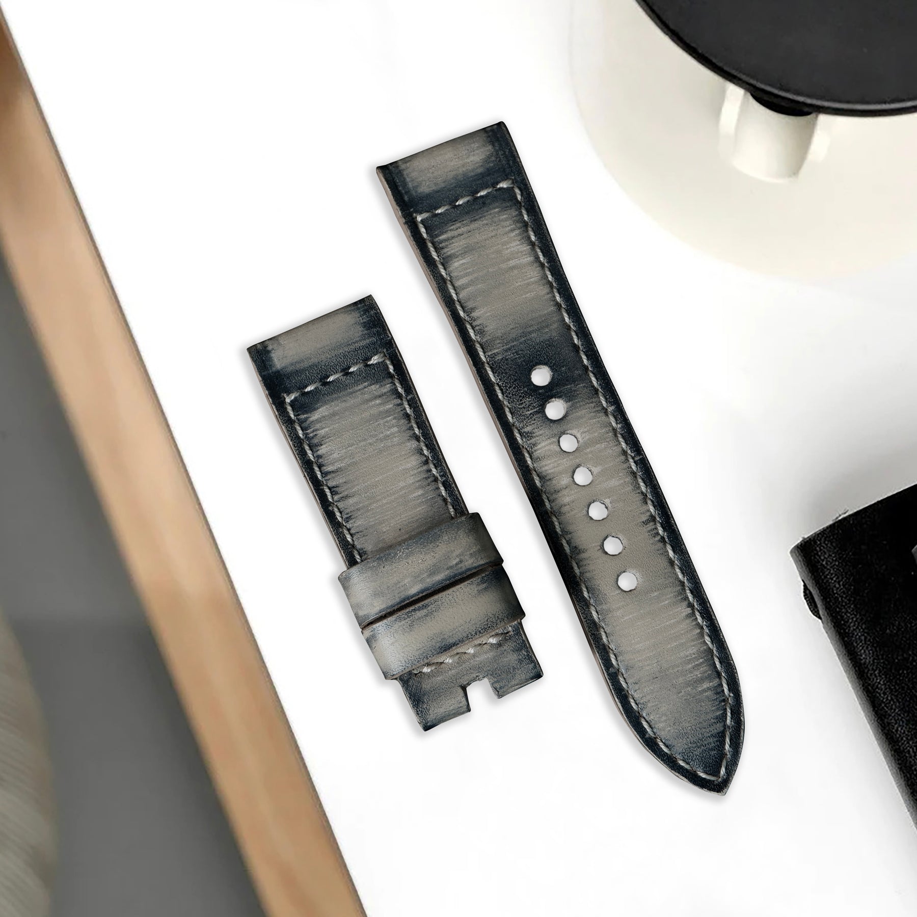 Provides a wonderful depth of color. It's rich grey leather has a roughed up finish that adds a ton of character, yet it remains smooth and supple when worn. It accentuates your beautiful watches with a rugged look and somehow only adds to their style.