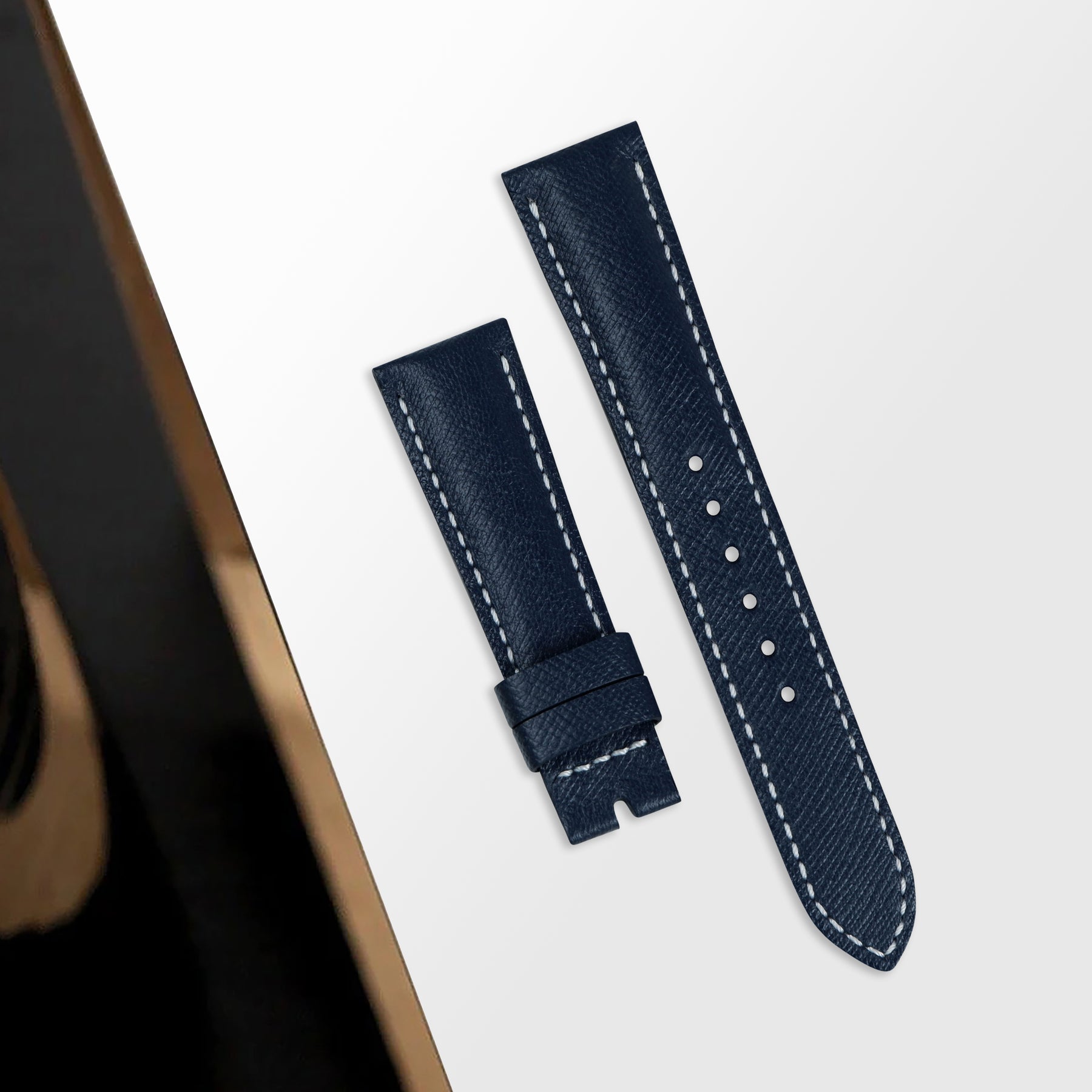 Our Navy Blue Saffiano is the one strap for all your needs. The watch strap deals well with water, scratches and is also easy to care for and can be cleaned with a simple wipe using a damp cloth.