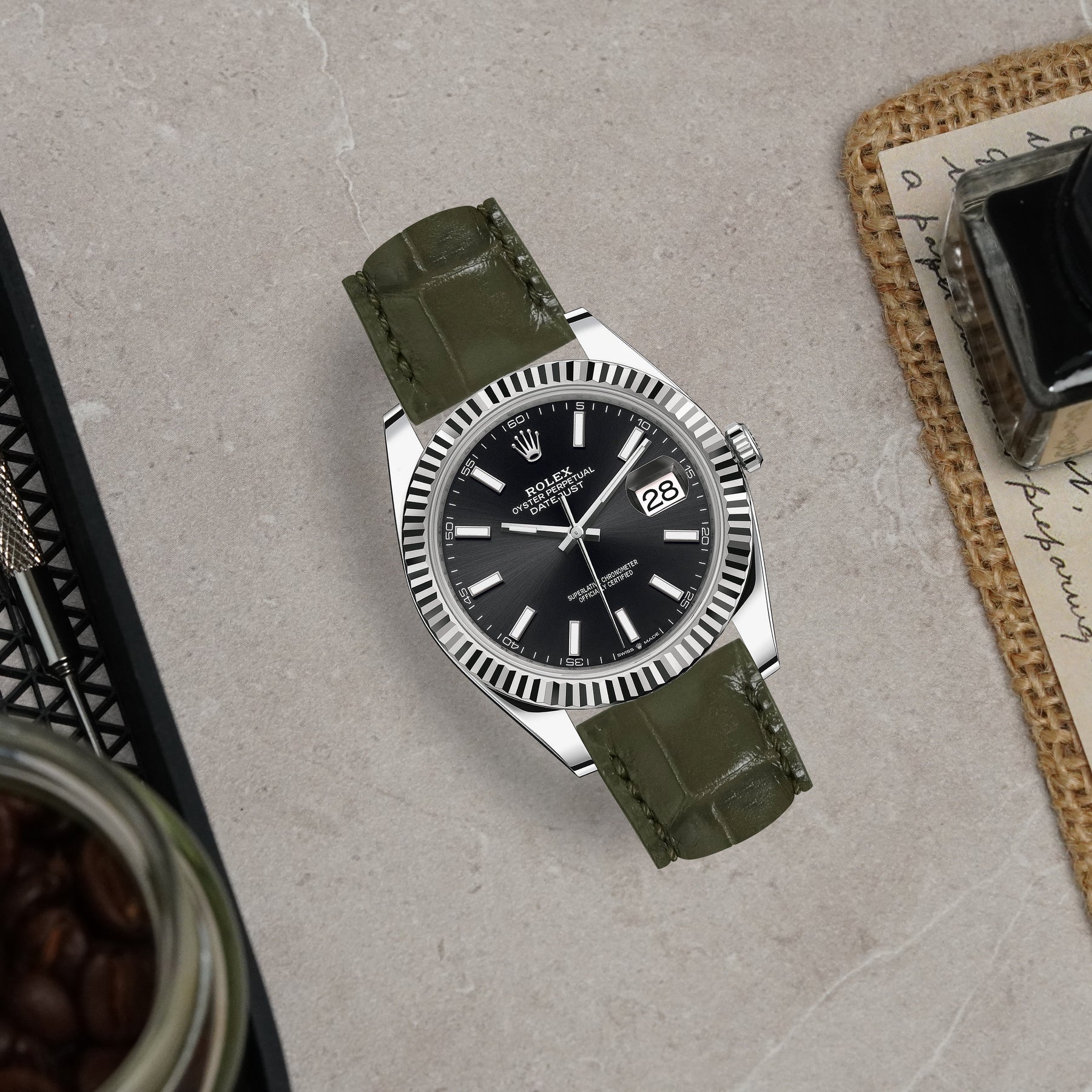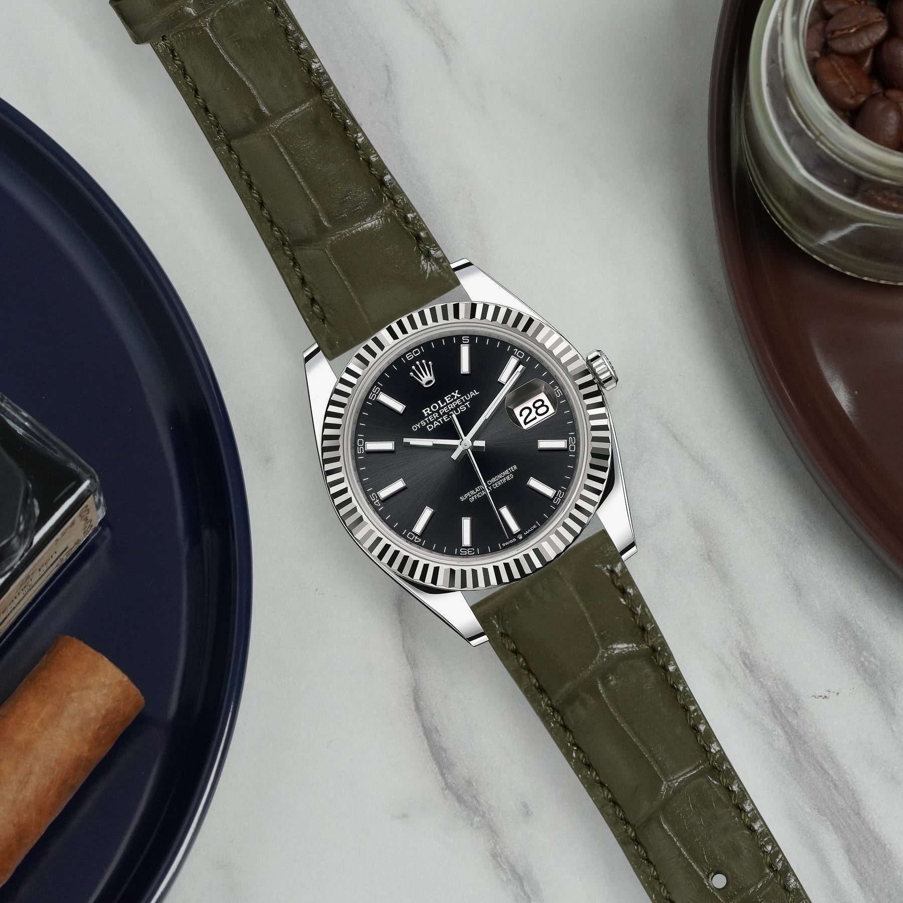 Rolex Datejust Straps - Croco Vert Olive