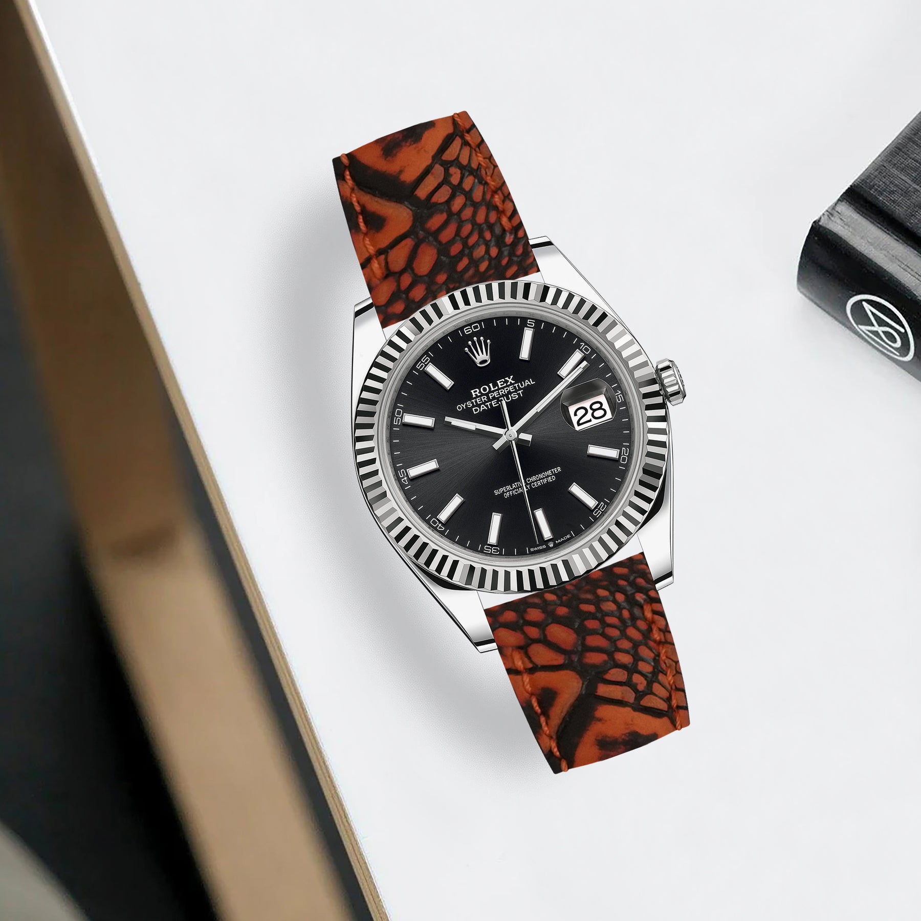 Rolex Datejust Straps - Ostrich Leg Nubuck Tangerine