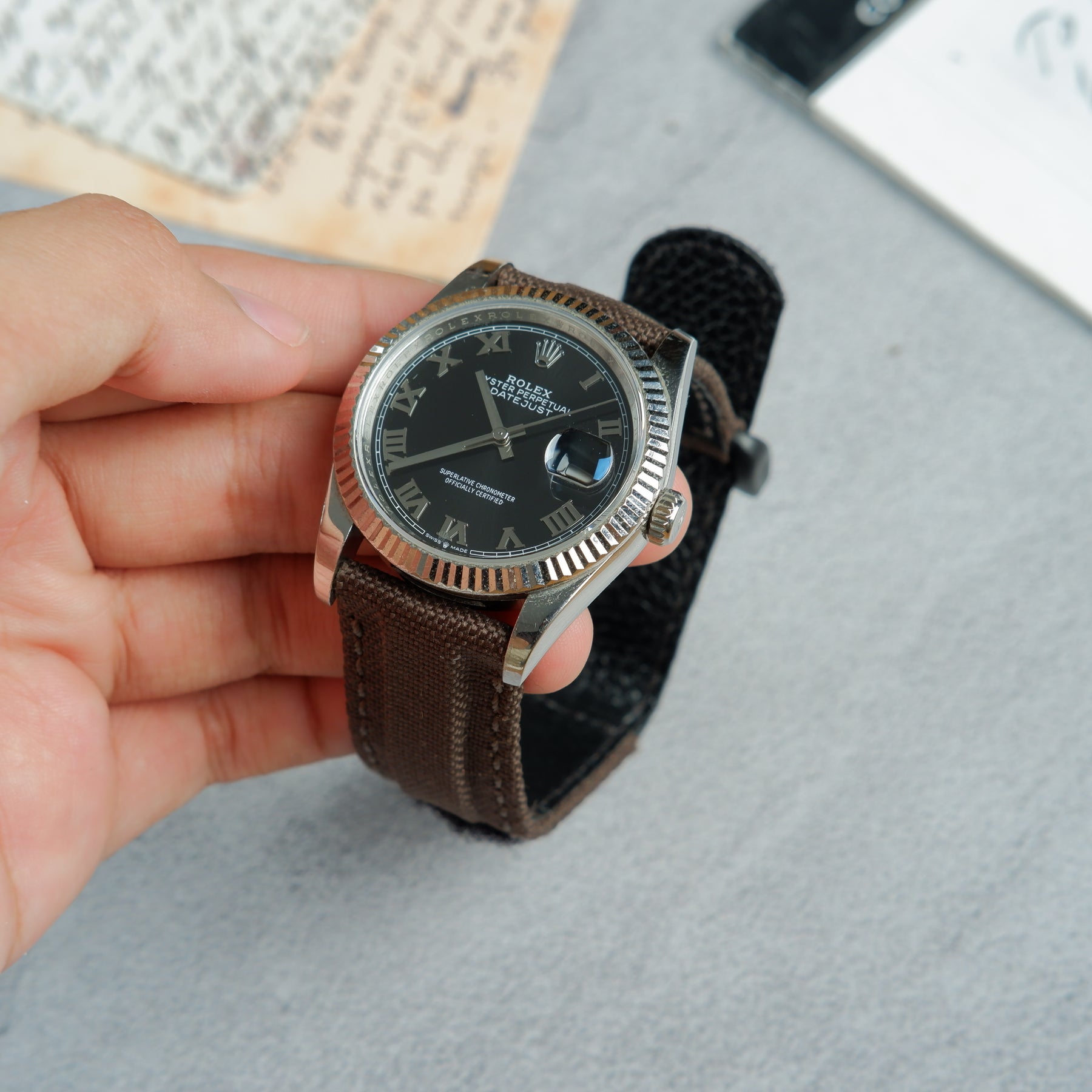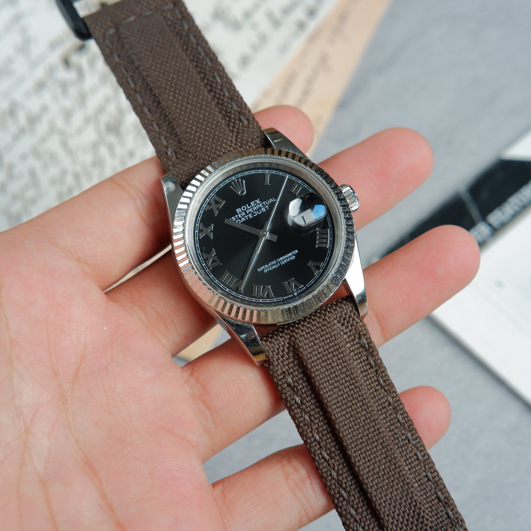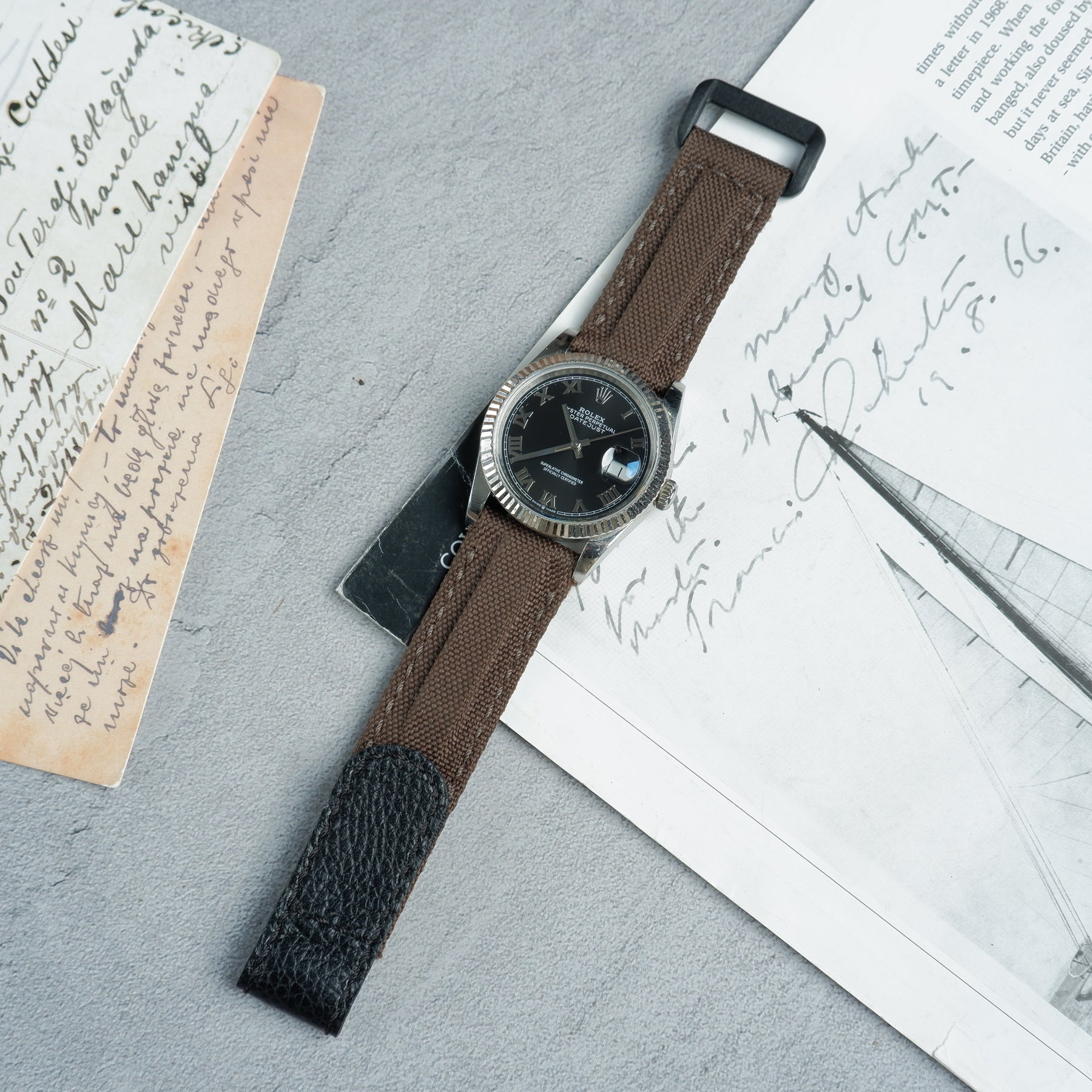 Rolex Datejust Straps - Velcro Canvas Extreme Padded Deep Taupe