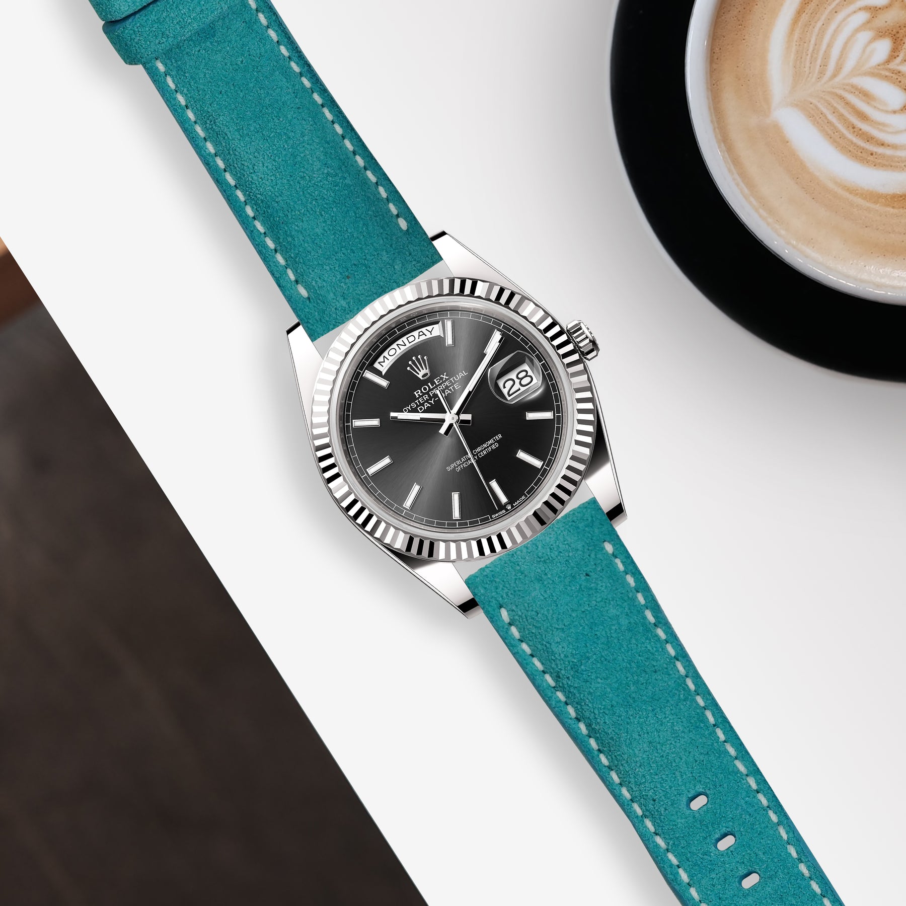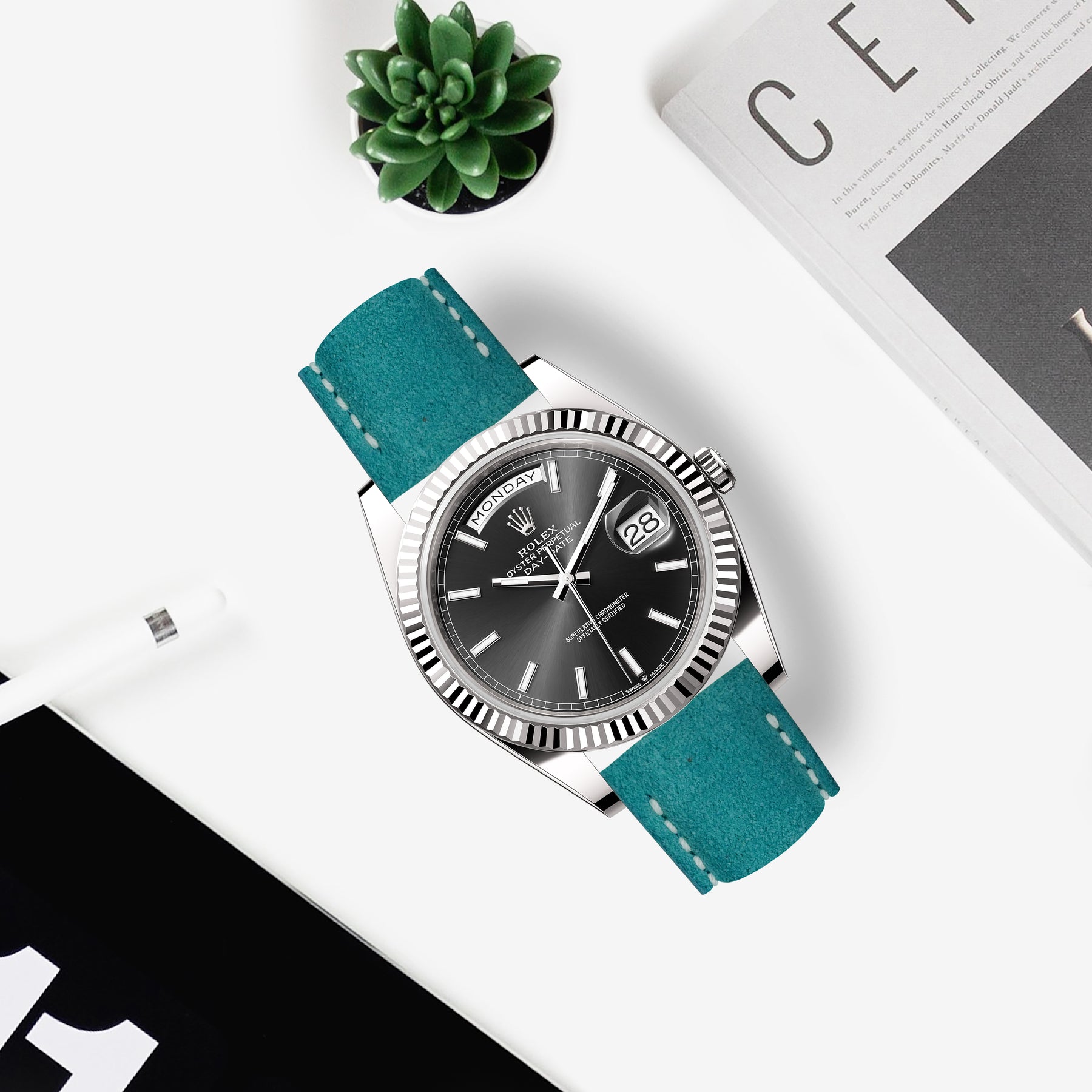 Rolex Daydate Straps - Suede Acqua
